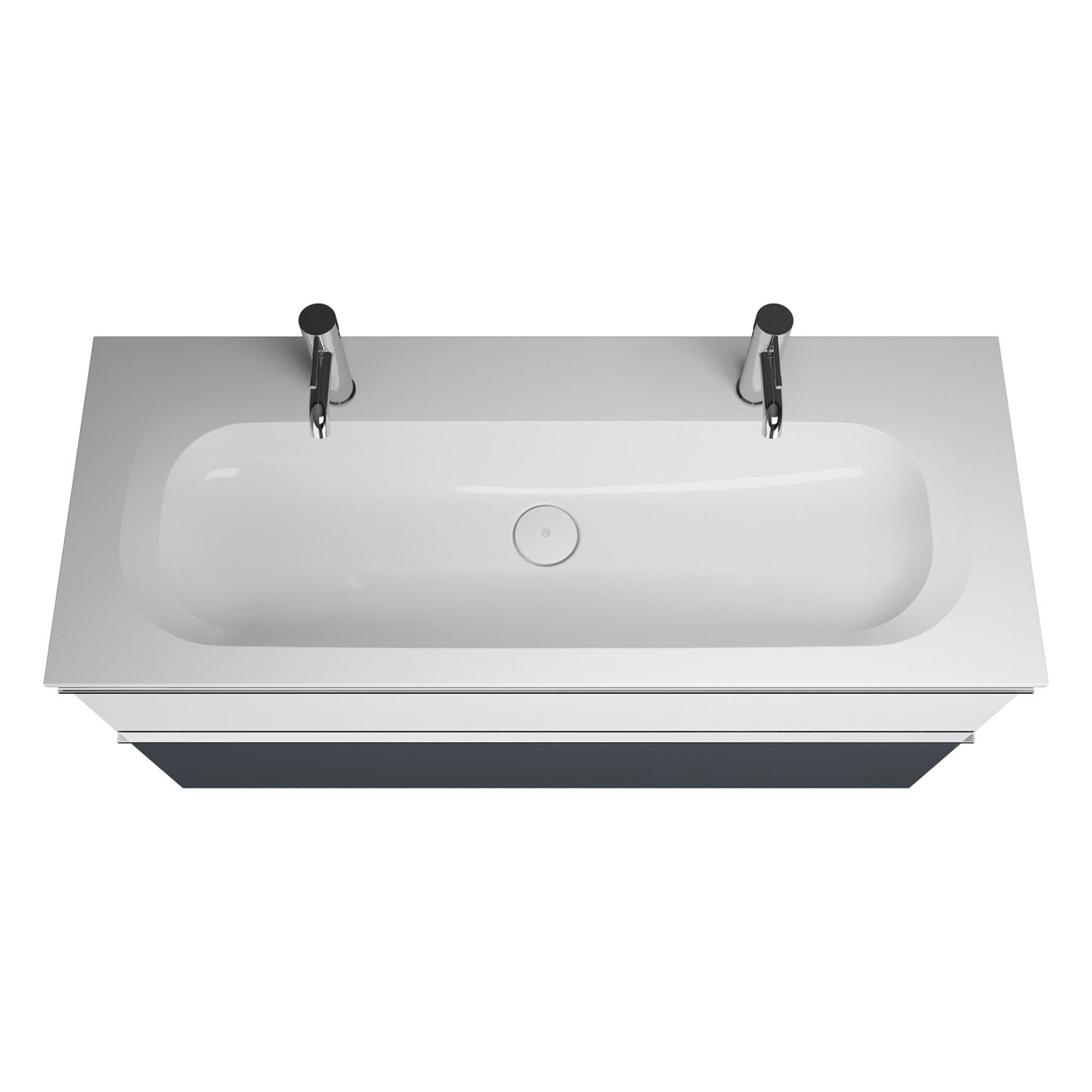 burgbad Fiumo Mineralguss-Waschtisch mit Unterschrank 122 cm, mit 2 Hahnlöcher, mit Griff G0146
