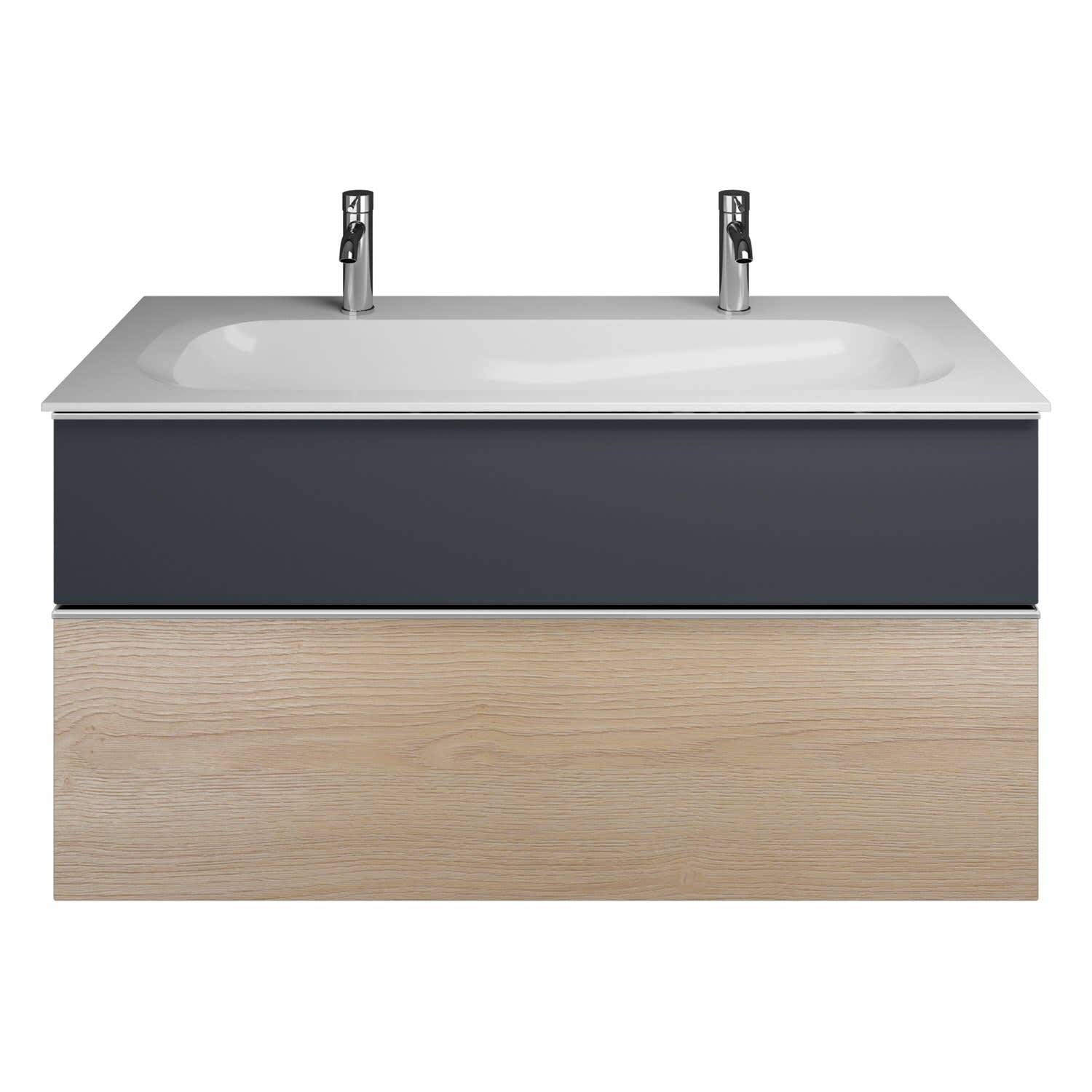 burgbad Fiumo Mineralguss-Waschtisch mit Unterschrank 122 cm, mit 2 Hahnlöcher, mit Griff G0146