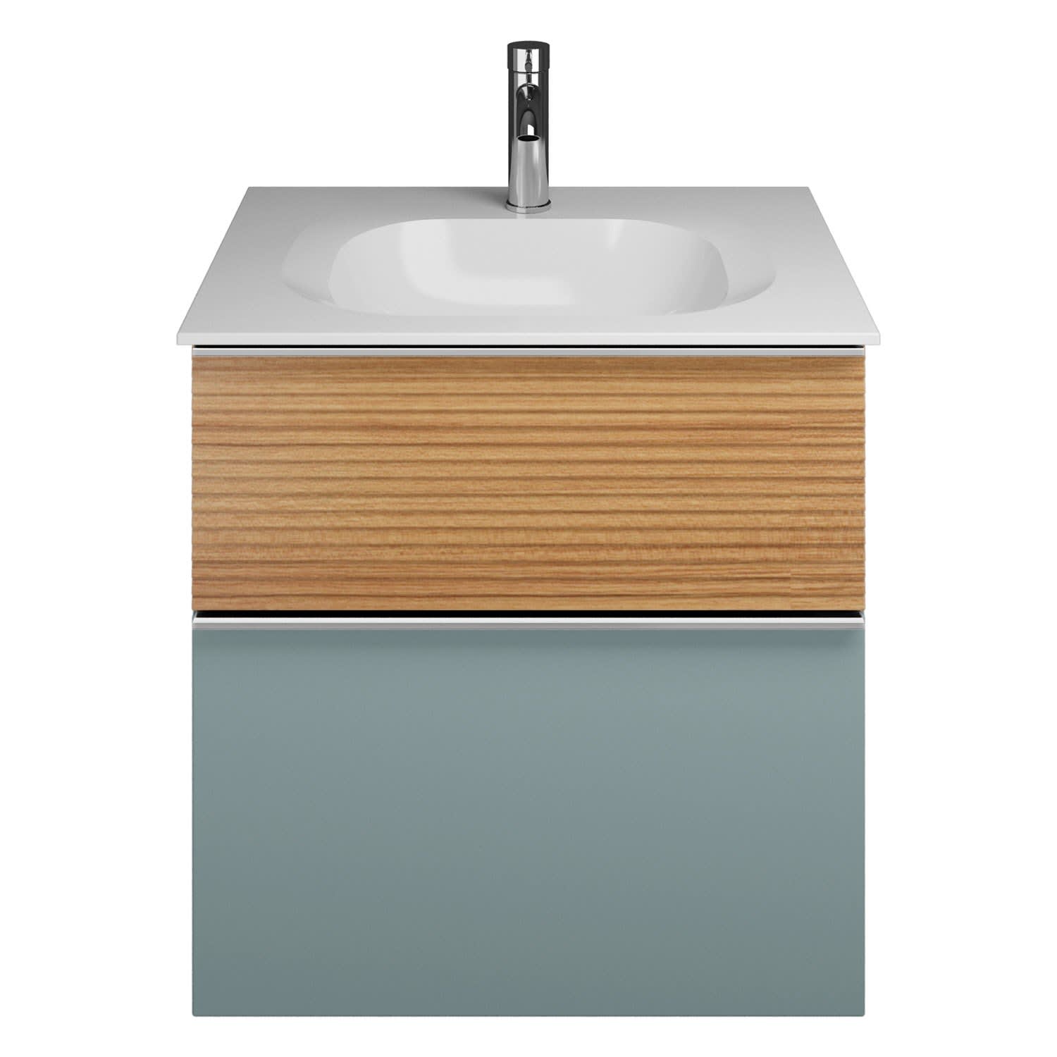 burgbad Fiumo Mineralguss-Waschtisch mit Unterschrank 62 cm, mit Griff G0146, oben mit Plissée-Struktur