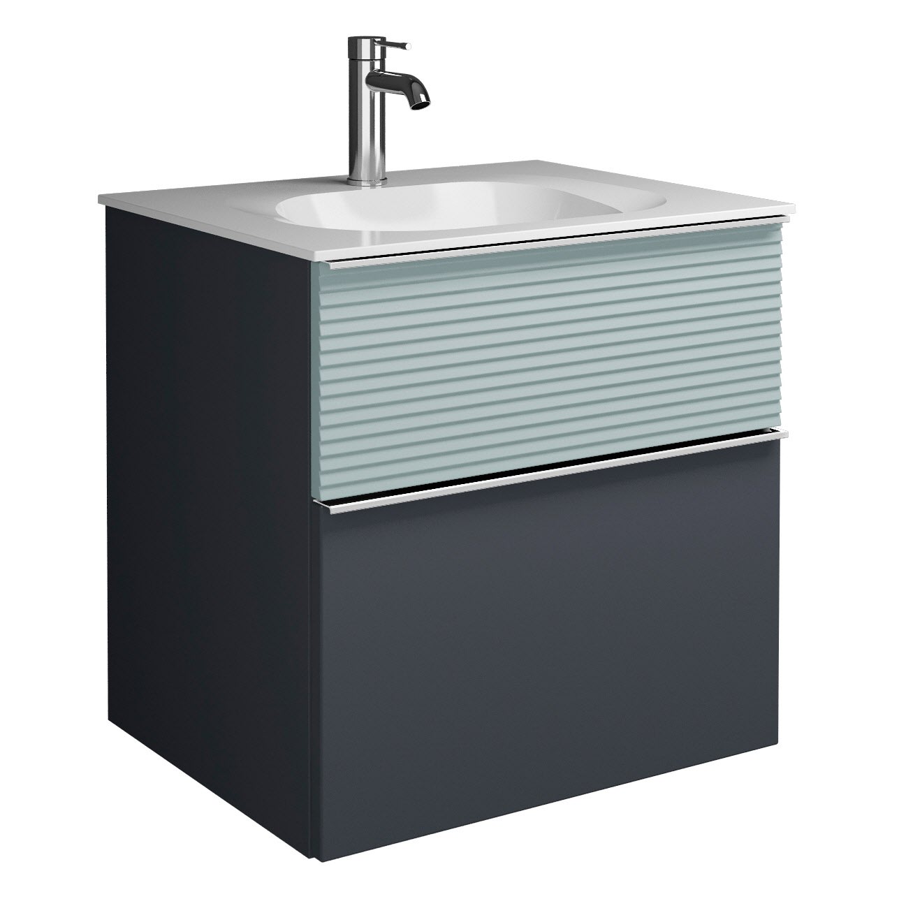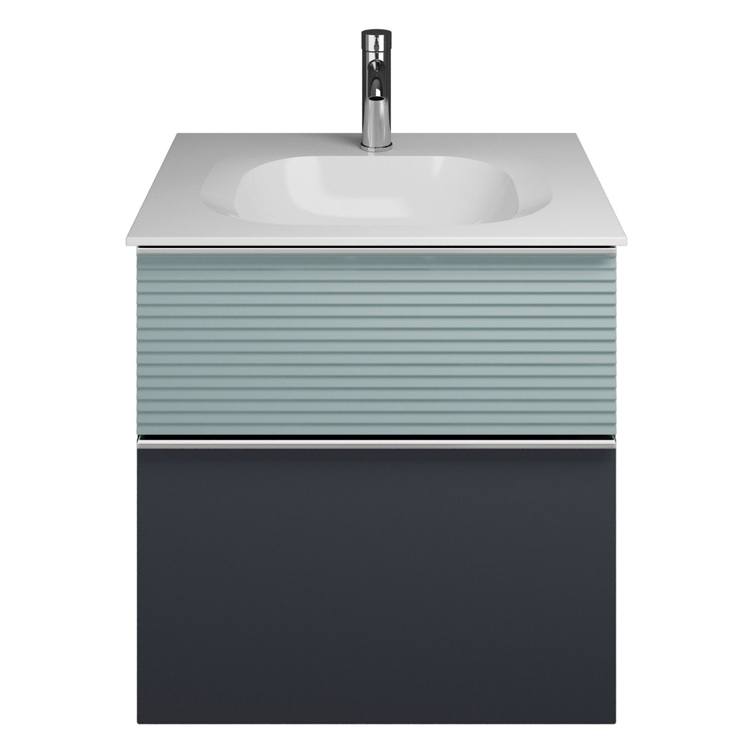 burgbad Fiumo Mineralguss-Waschtisch mit Unterschrank 62 cm, mit Griff G0146, oben mit Plissée-Struktur