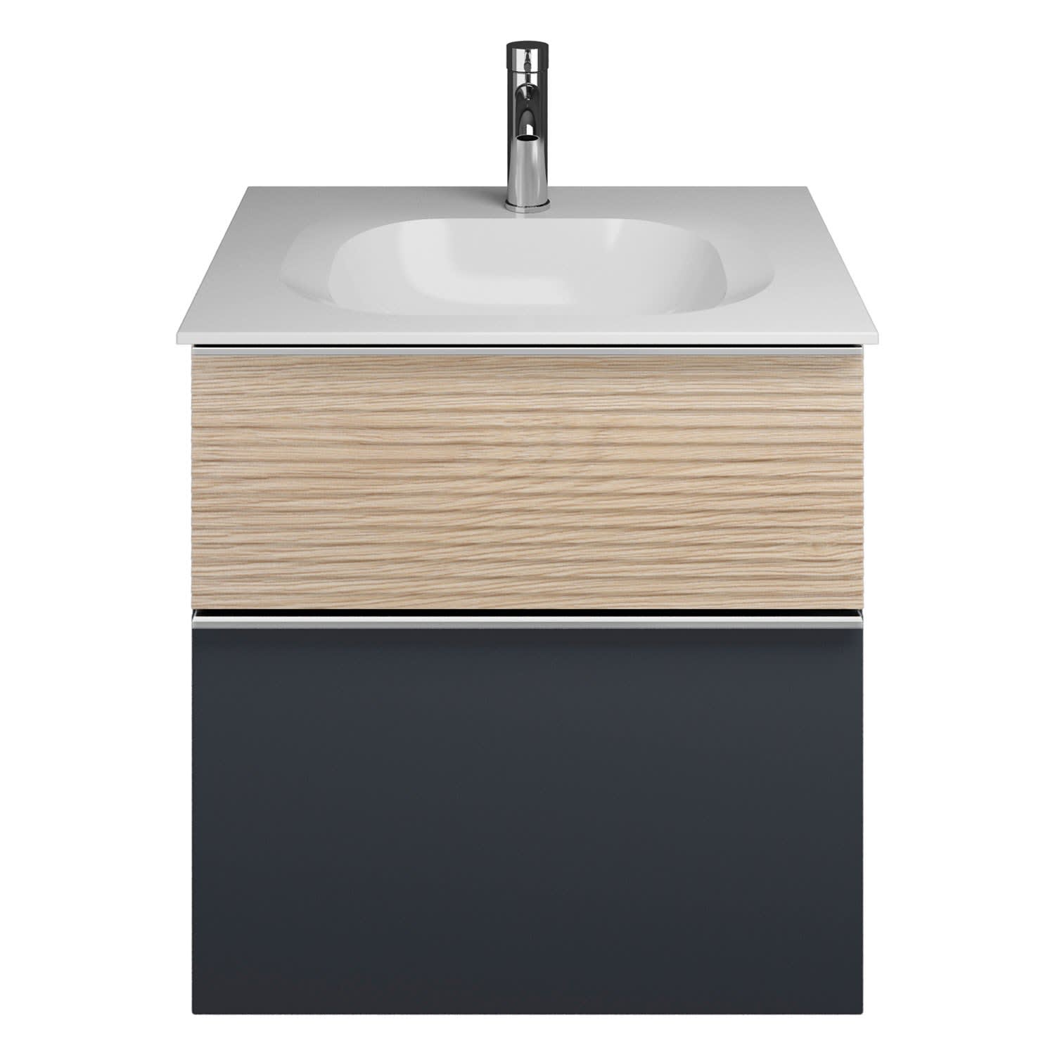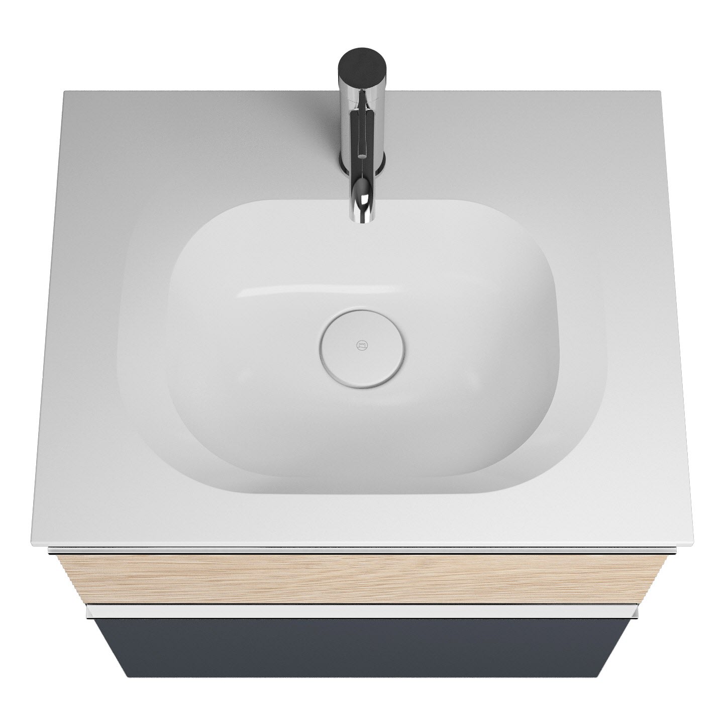burgbad Fiumo Mineralguss-Waschtisch mit Unterschrank 62 cm, mit Griff G0146, oben mit Plissée-Struktur