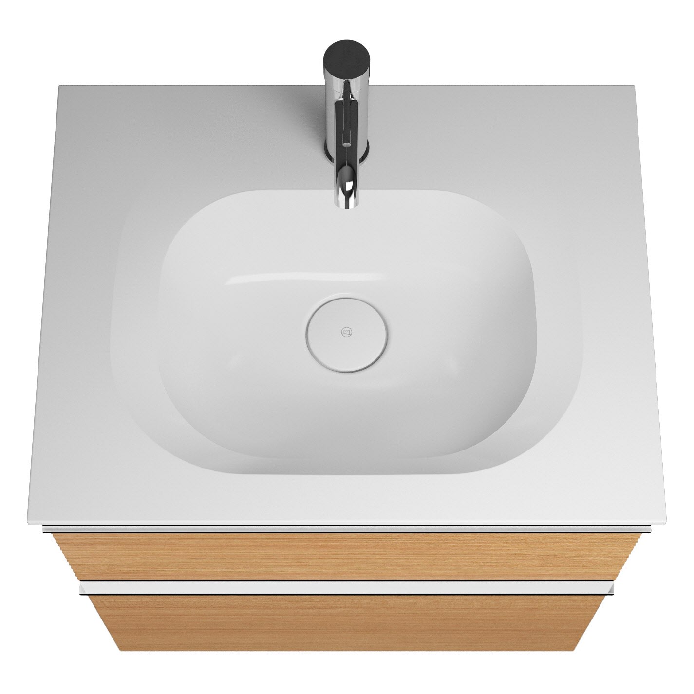 burgbad Fiumo Mineralguss-Waschtisch mit Unterschrank 62 cm, mit Griff G0146, oben mit Plissée-Struktur