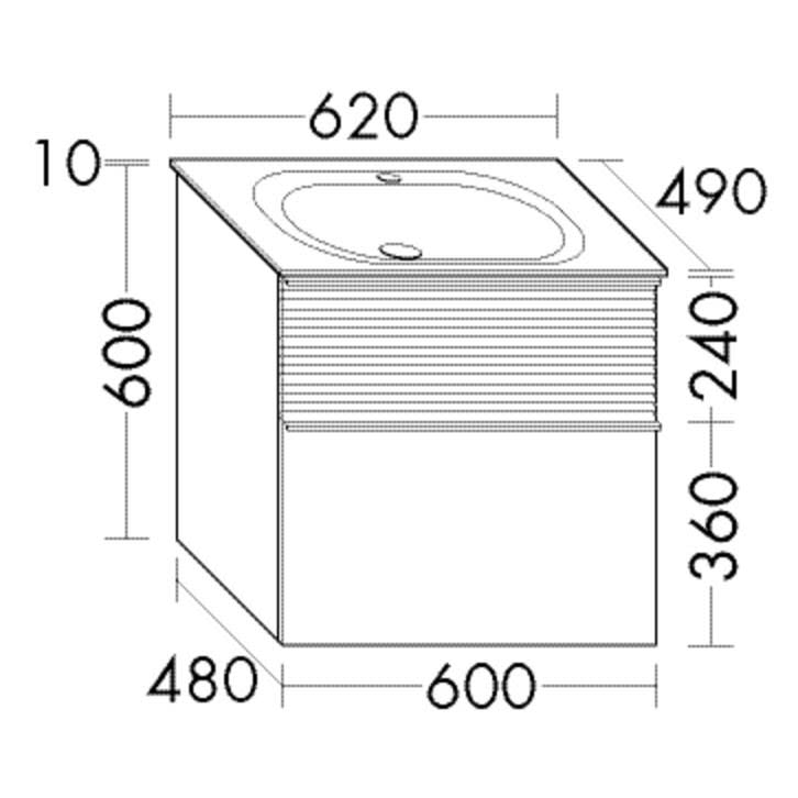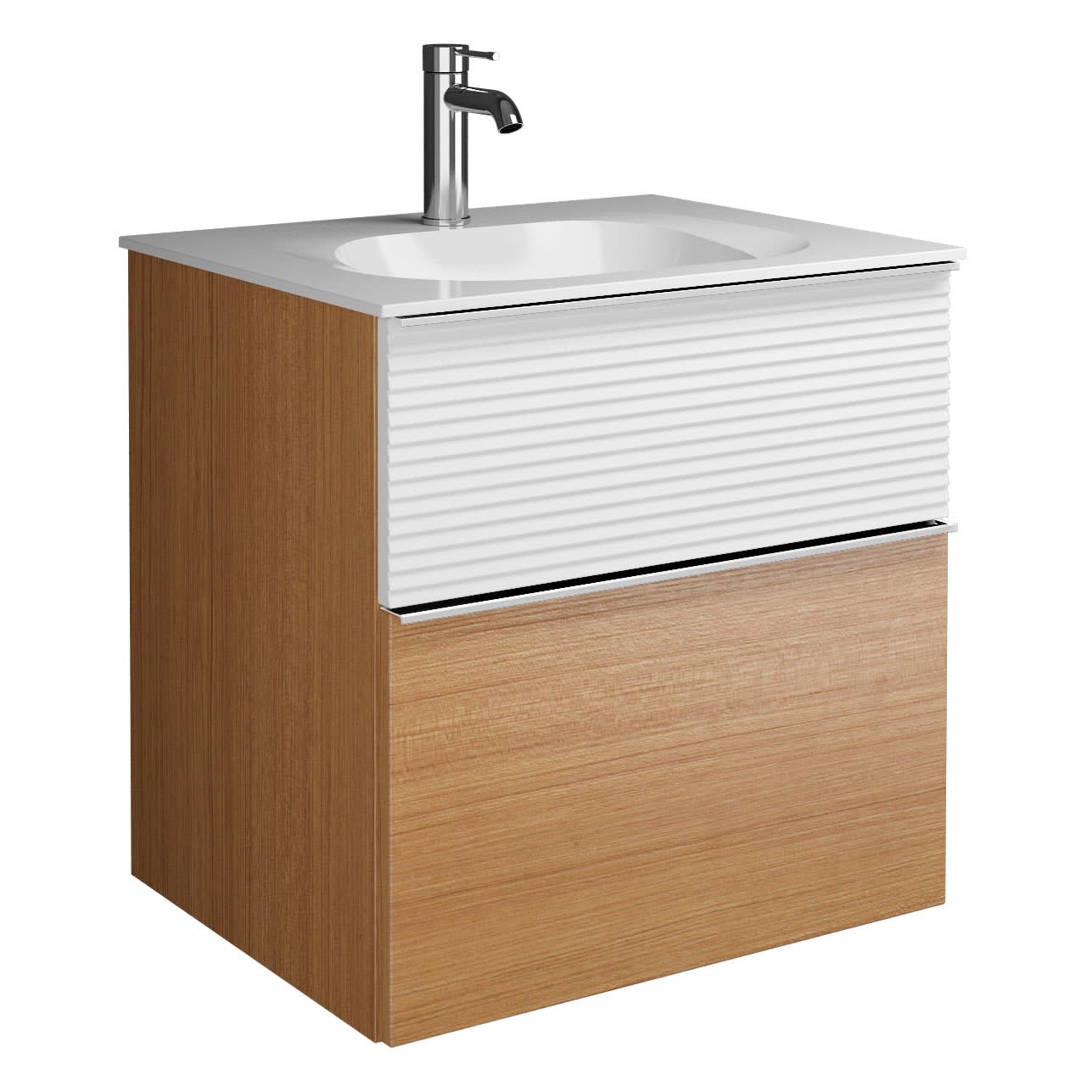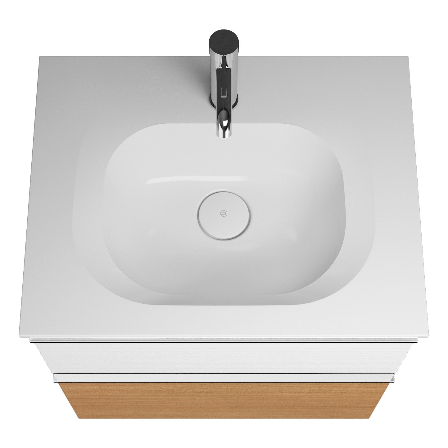 burgbad Fiumo Mineralguss-Waschtisch mit Unterschrank 62 cm, mit Griff G0146, oben mit Plissée-Struktur