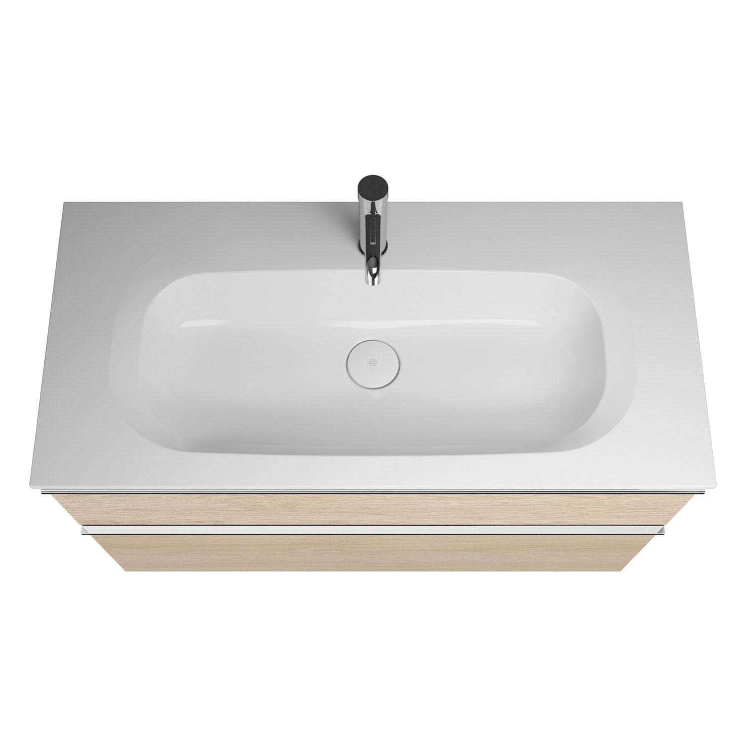 burgbad Fiumo Mineralguss-Waschtisch mit Unterschrank 102 cm, mit Griff G0146, oben mit Plissée-Struktur