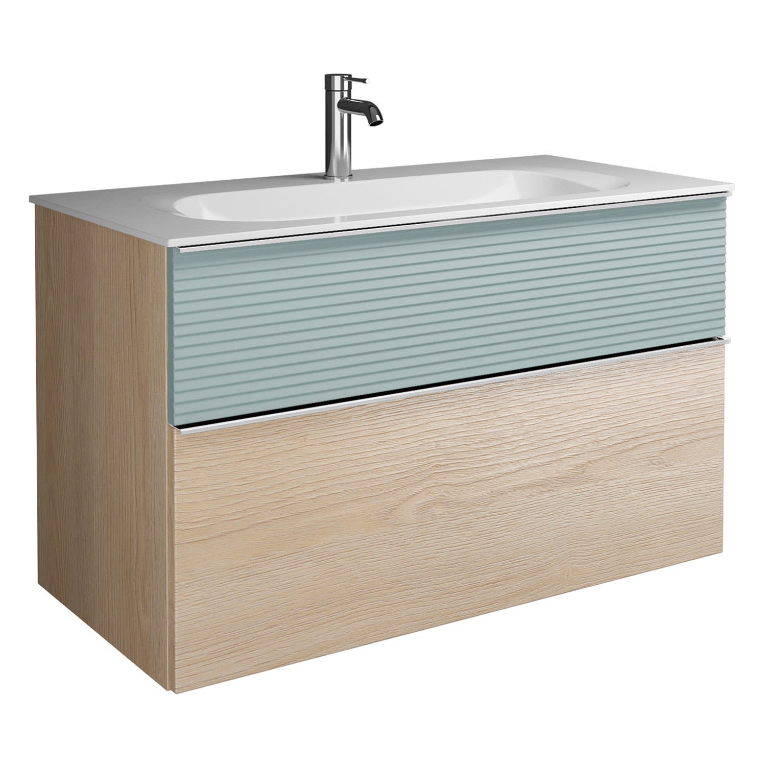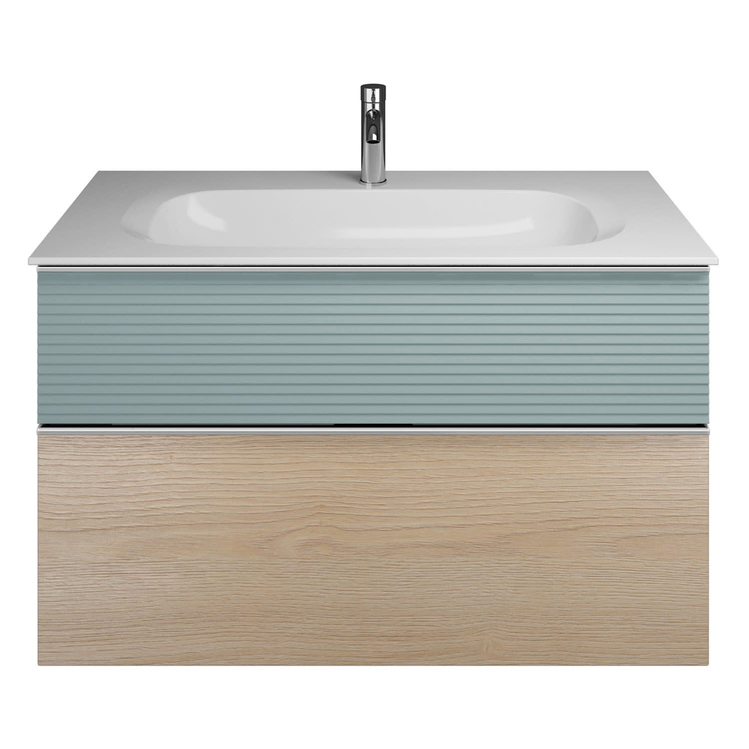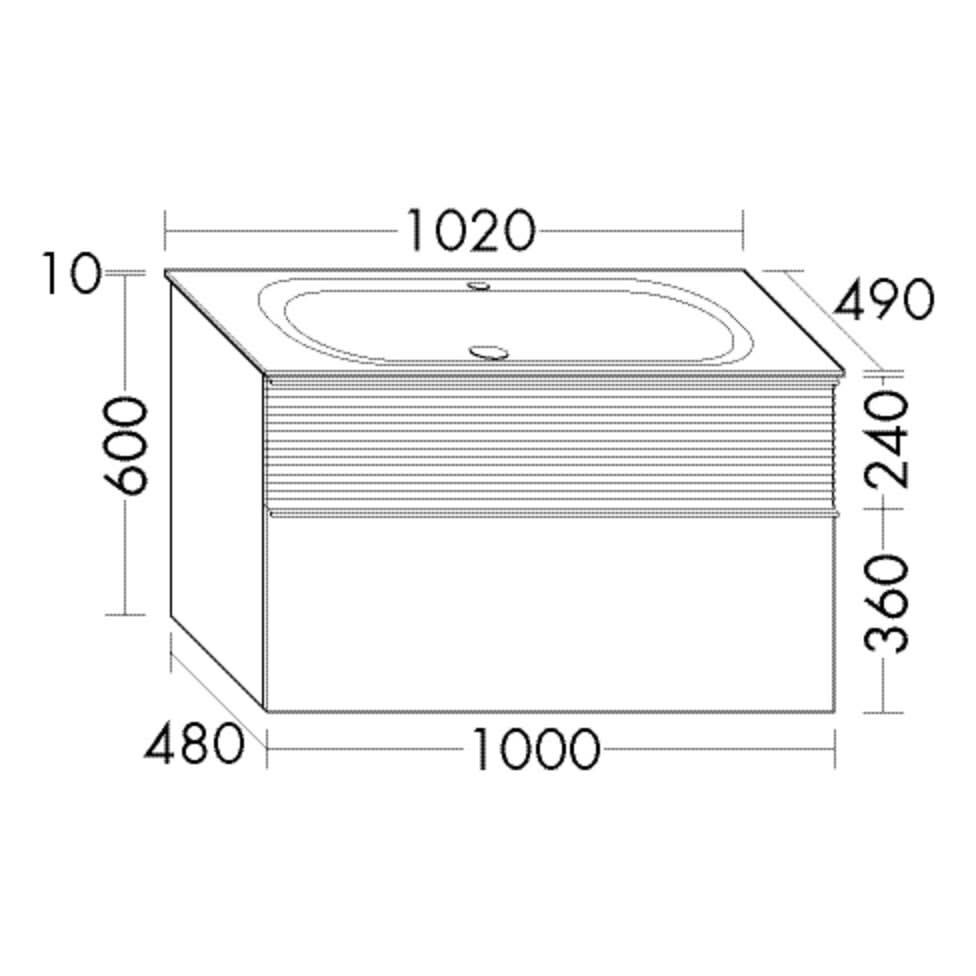 burgbad Fiumo Mineralguss-Waschtisch mit Unterschrank 102 cm, mit Griff G0146, oben mit Plissée-Struktur