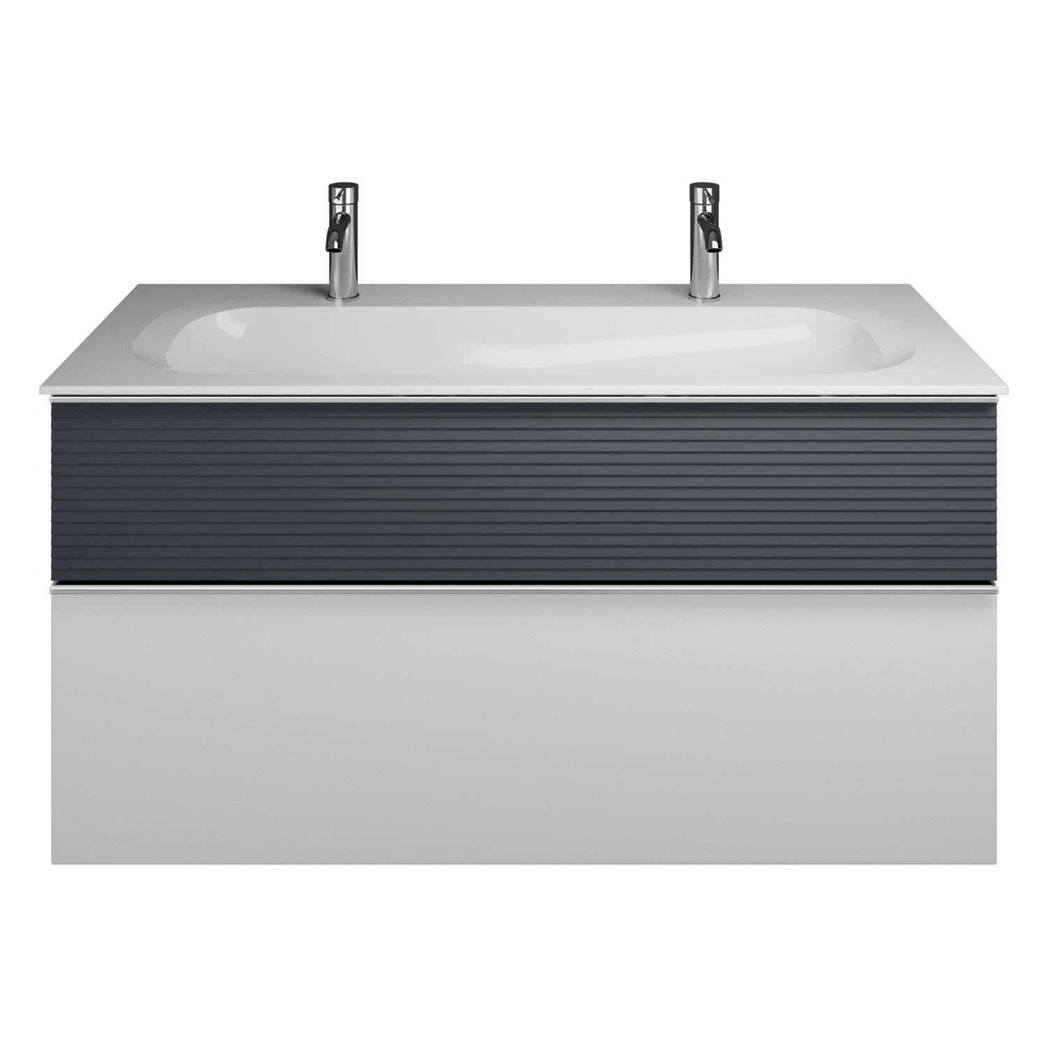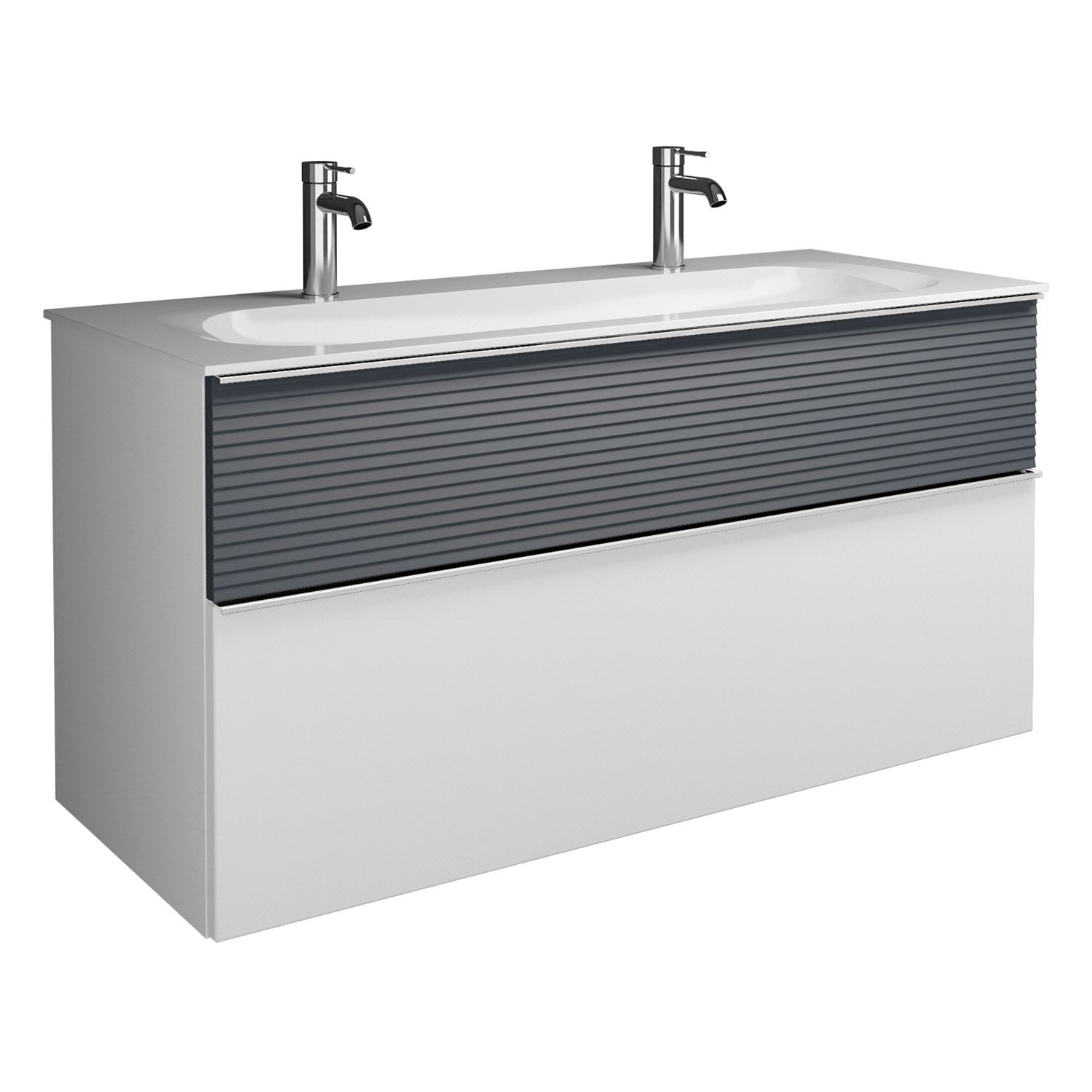 burgbad Fiumo Mineralguss-Waschtisch mit Unterschrank 122 cm, mit 2 Hahnlöcher, mit Griff G0146, oben mit Plissée-Struktur