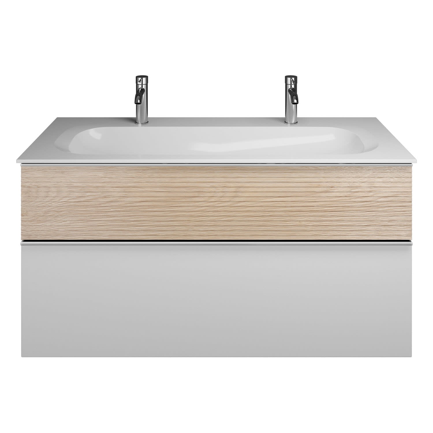 burgbad Fiumo Mineralguss-Waschtisch mit Unterschrank 122 cm, mit 2 Hahnlöcher, mit Griff G0146, oben mit Plissée-Struktur