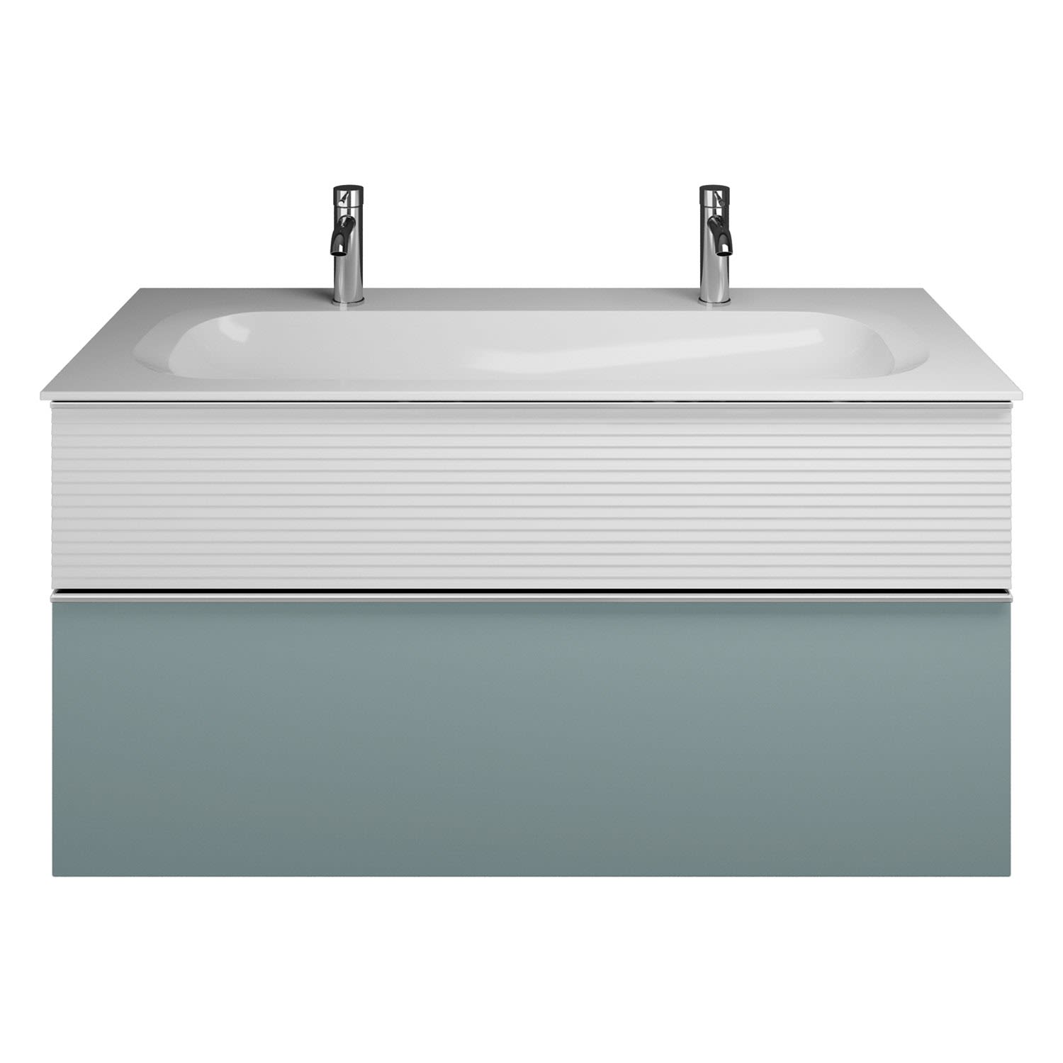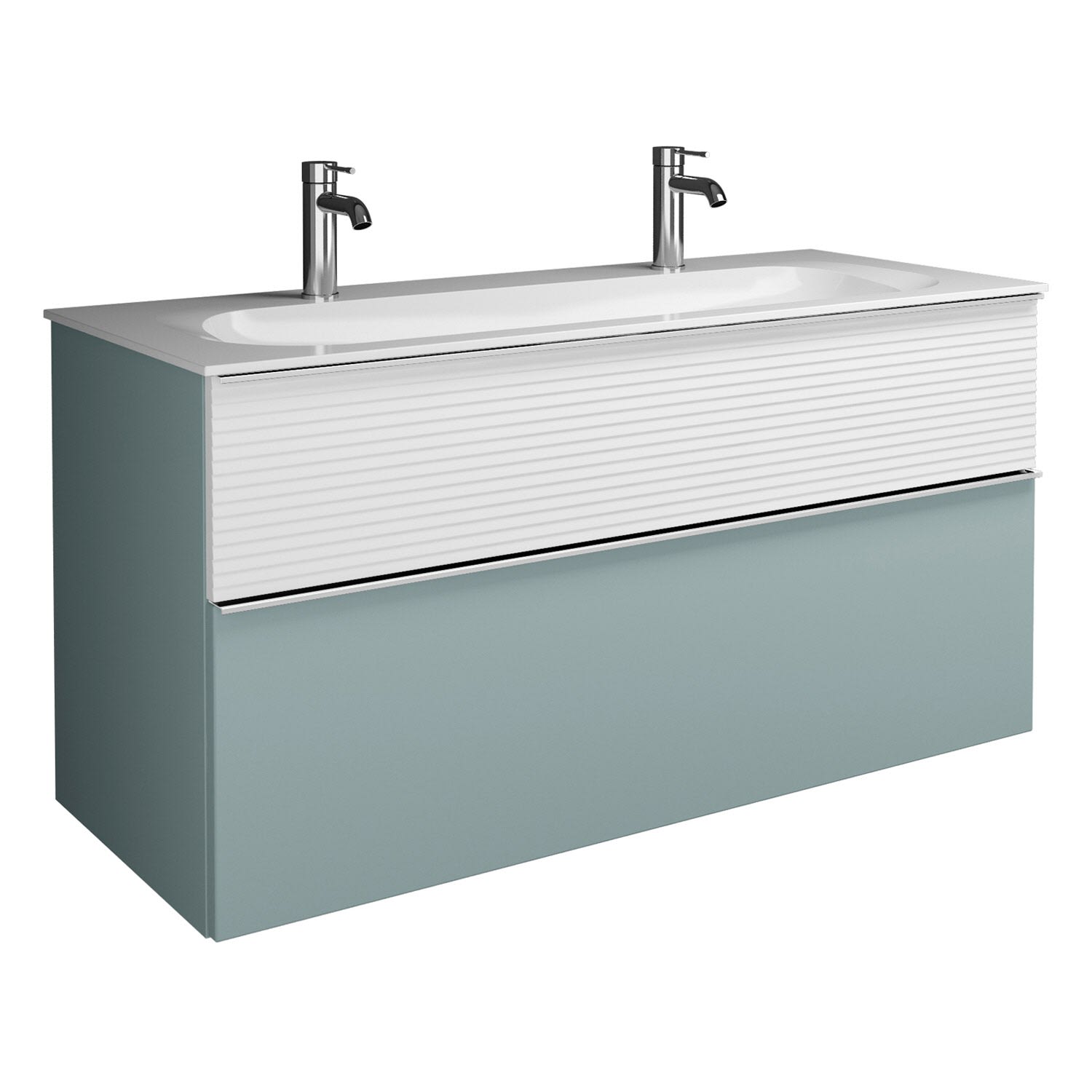 burgbad Fiumo Mineralguss-Waschtisch mit Unterschrank 122 cm, mit 2 Hahnlöcher, mit Griff G0146, oben mit Plissée-Struktur