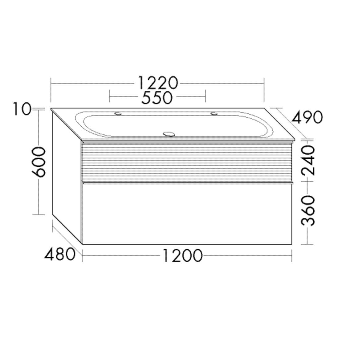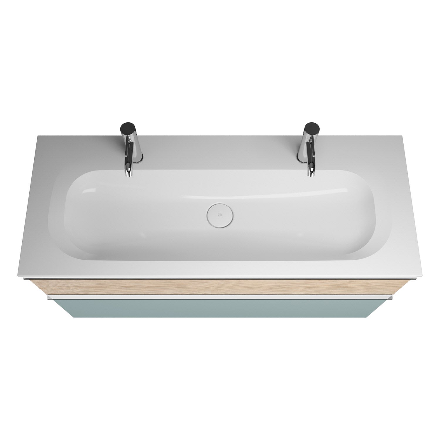 burgbad Fiumo Mineralguss-Waschtisch mit Unterschrank 122 cm, mit 2 Hahnlöcher, mit Griff G0146, oben mit Plissée-Struktur