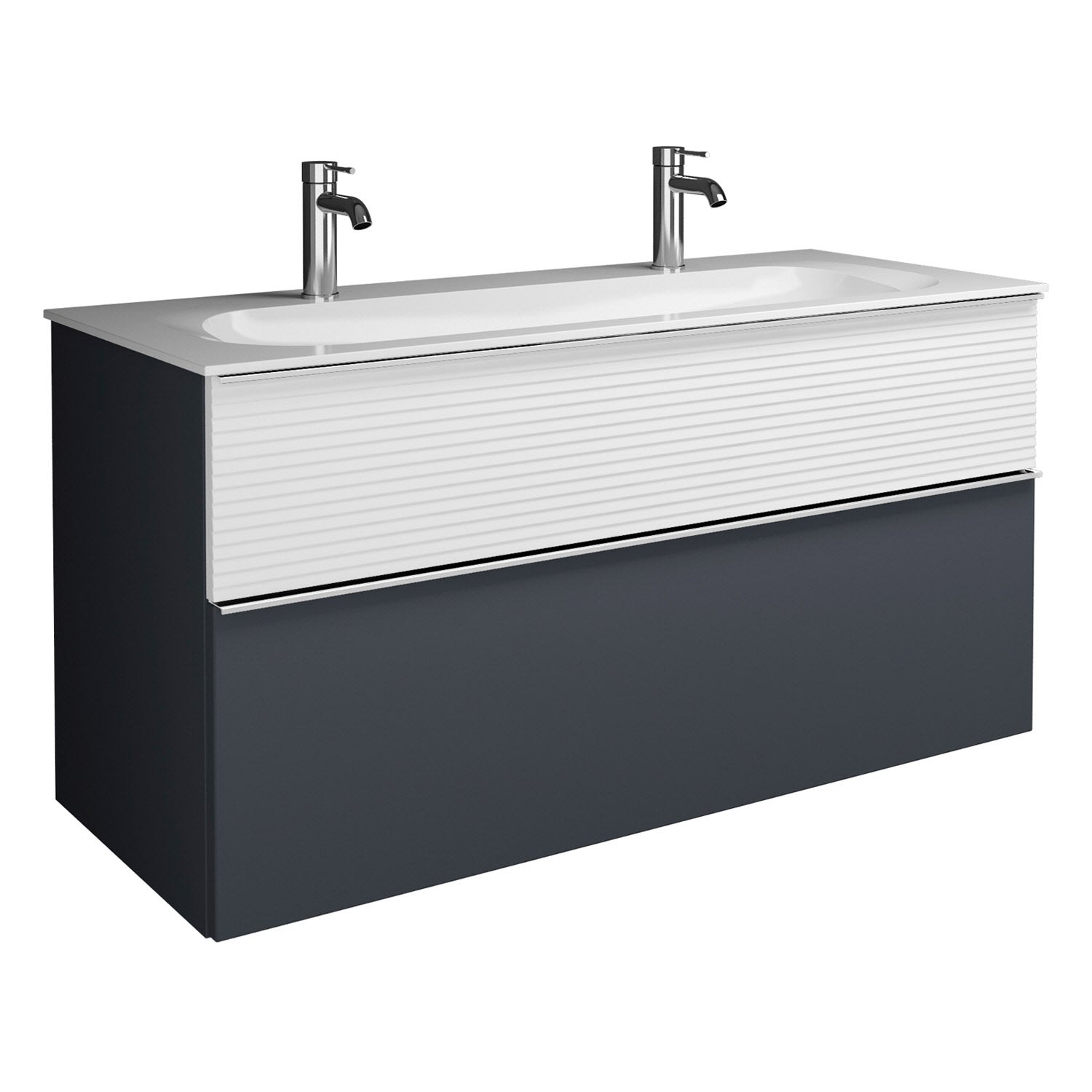 burgbad Fiumo Mineralguss-Waschtisch mit Unterschrank 122 cm, mit 2 Hahnlöcher, mit Griff G0146, oben mit Plissée-Struktur