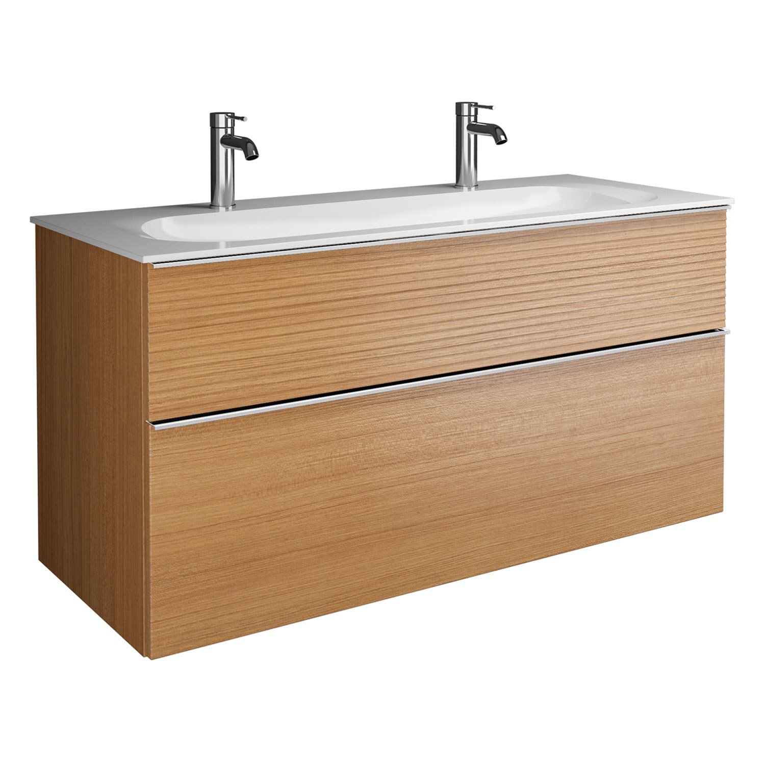 burgbad Fiumo Mineralguss-Waschtisch mit Unterschrank 122 cm, mit 2 Hahnlöcher, mit Griff G0146, oben mit Plissée-Struktur
