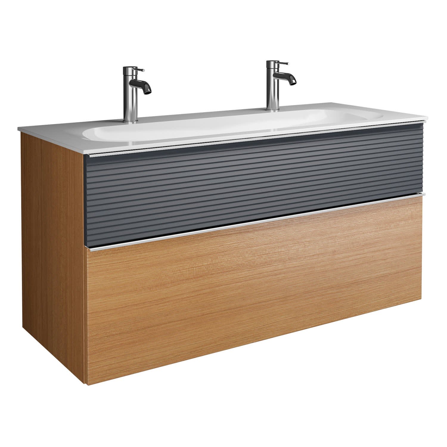 burgbad Fiumo Mineralguss-Waschtisch mit Unterschrank 122 cm, mit 2 Hahnlöcher, mit Griff G0146, oben mit Plissée-Struktur