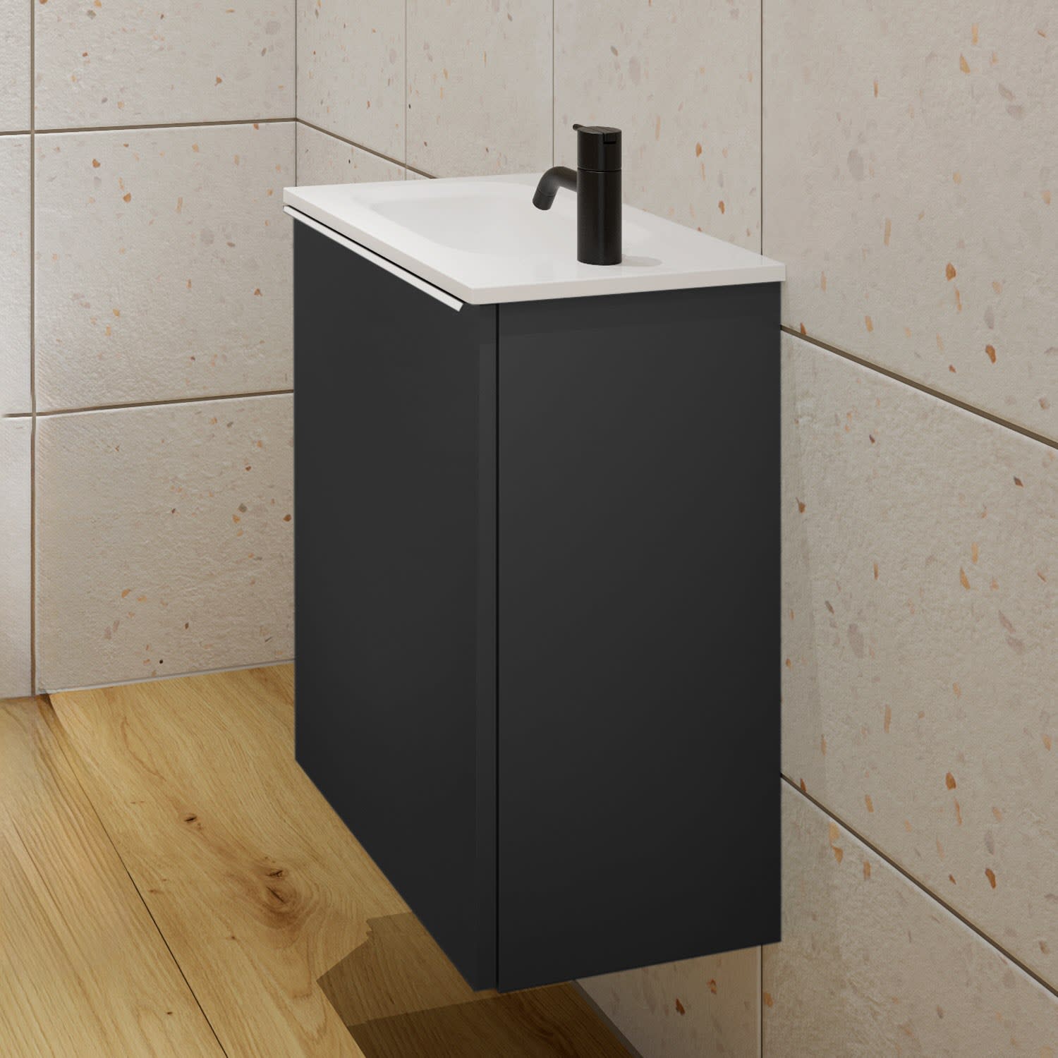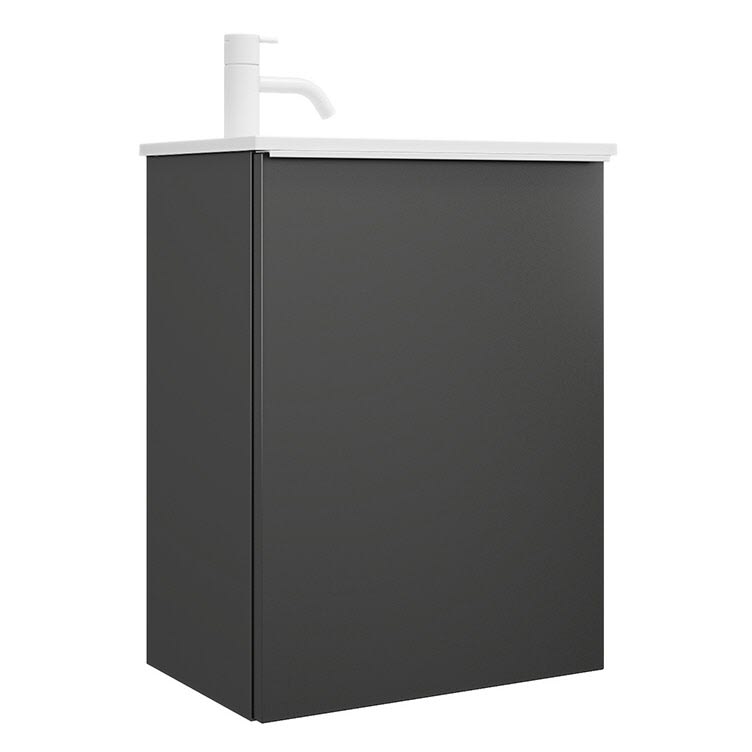 burgbad Fiumo Mineralguss-Waschtisch mit Unterschrank 47 cm, mit 1 Tür, Anschlag links, mit Griff G0223