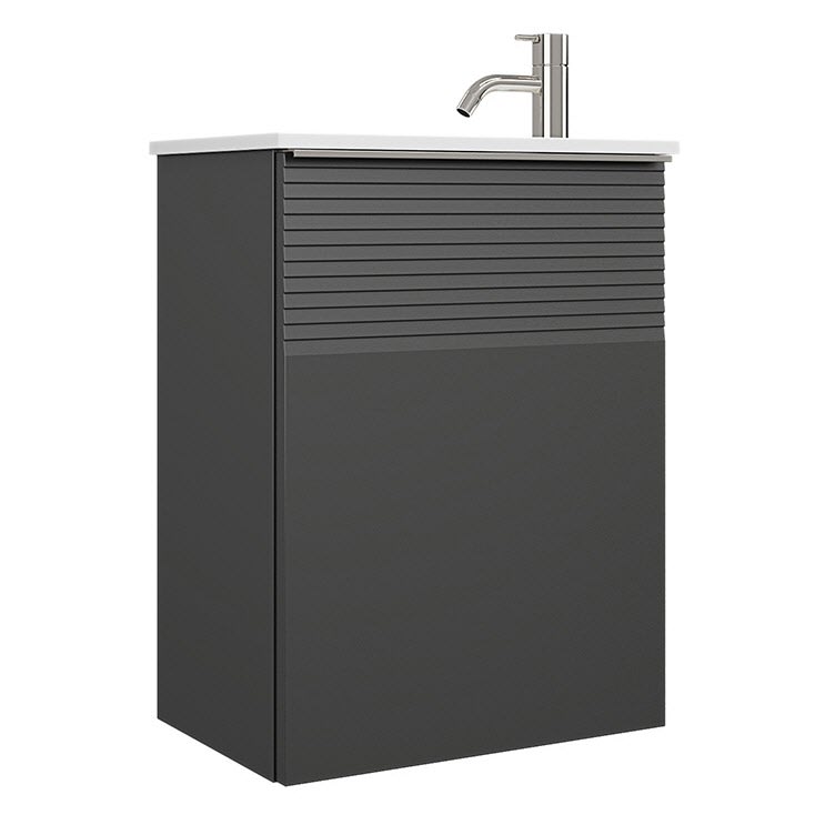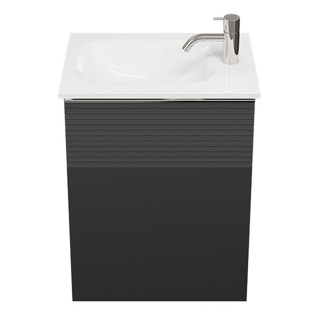 burgbad Fiumo Mineralguss-Waschtisch mit Unterschrank 47 cm, mit 1 Tür mit mit Plissée-Struktur Anschlag rechts, mit Griff G0146