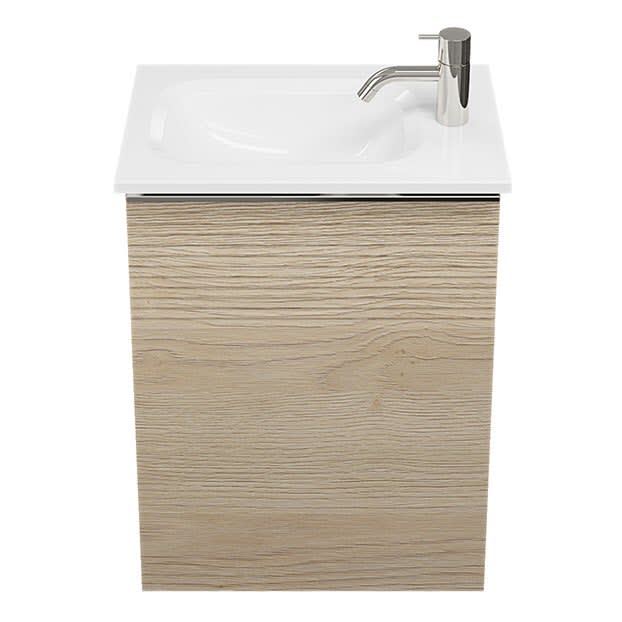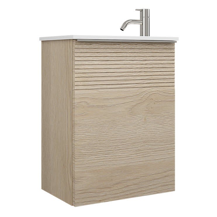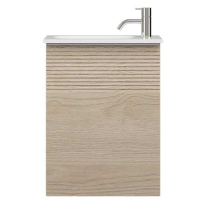 burgbad Fiumo Mineralguss-Waschtisch mit Unterschrank 47 cm, mit 1 Tür mit mit Plissée-Struktur Anschlag rechts, mit Griff G0146