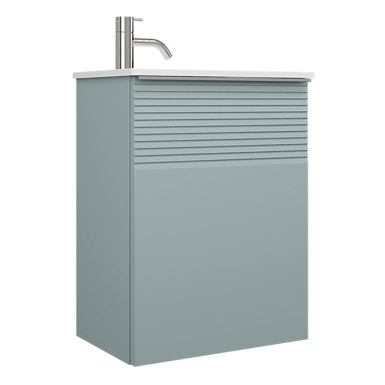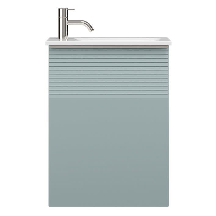 burgbad Fiumo Mineralguss-Waschtisch mit Unterschrank 47 cm, mit 1 Tür mit mit Plissée-Struktur Anschlag links, mit Griff G0146