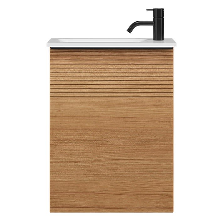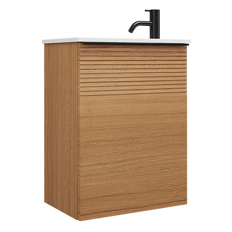burgbad Fiumo Mineralguss-Waschtisch mit Unterschrank 47 cm, mit 1 Tür mit mit Plissée-Struktur Anschlag rechts, mit Griff G0200
