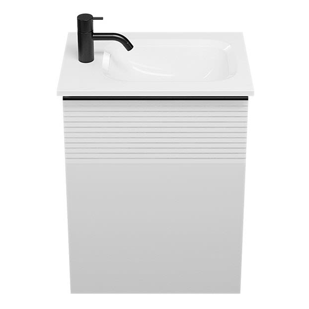 burgbad Fiumo Mineralguss-Waschtisch mit Unterschrank 47 cm, mit 1 Tür mit mit Plissée-Struktur Anschlag links, mit Griff G0200