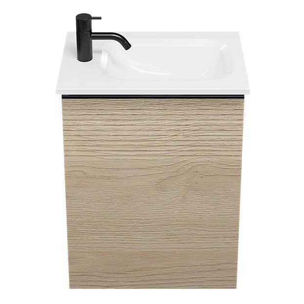 burgbad Fiumo Mineralguss-Waschtisch mit Unterschrank 47 cm, mit 1 Tür mit mit Plissée-Struktur Anschlag links, mit Griff G0200
