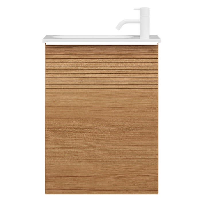 burgbad Fiumo Mineralguss-Waschtisch mit Unterschrank 47 cm, mit 1 Tür mit mit Plissée-Struktur Anschlag rechts, mit Griff G0223