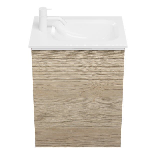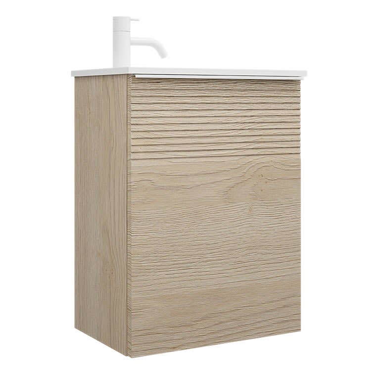 burgbad Fiumo Mineralguss-Waschtisch mit Unterschrank 47 cm, mit 1 Tür mit mit Plissée-Struktur Anschlag links, mit Griff G0223