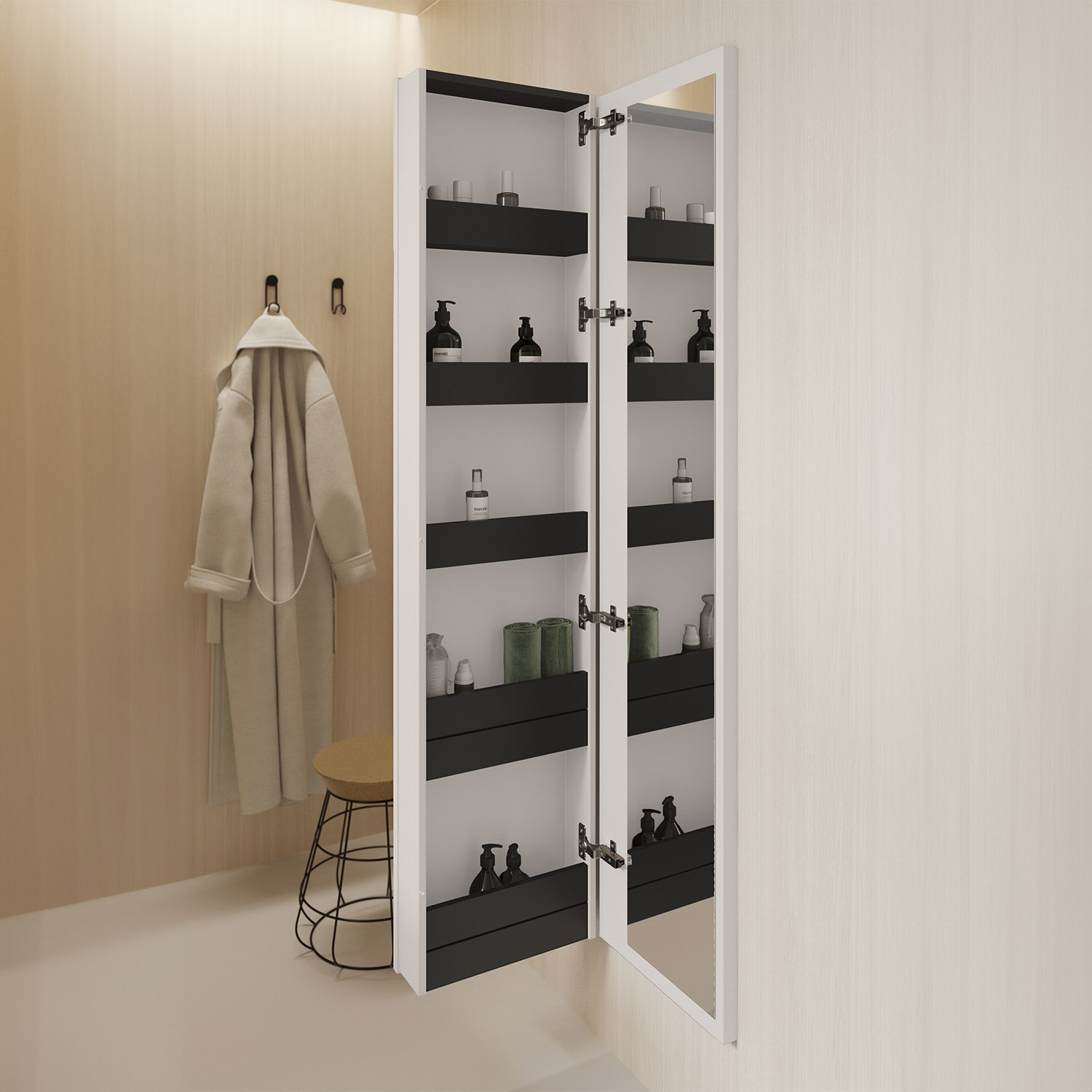 - 1 Koffertür mit innenseitigem Ganzkörperspiegel
