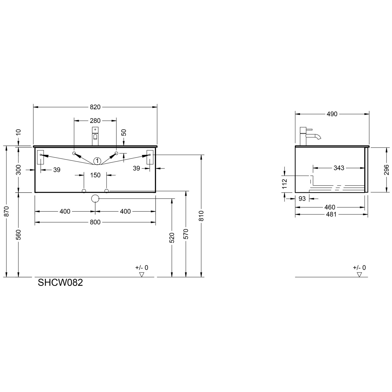 Home Waschtisch mit Unterschrank 80 cm, 1 Auszug