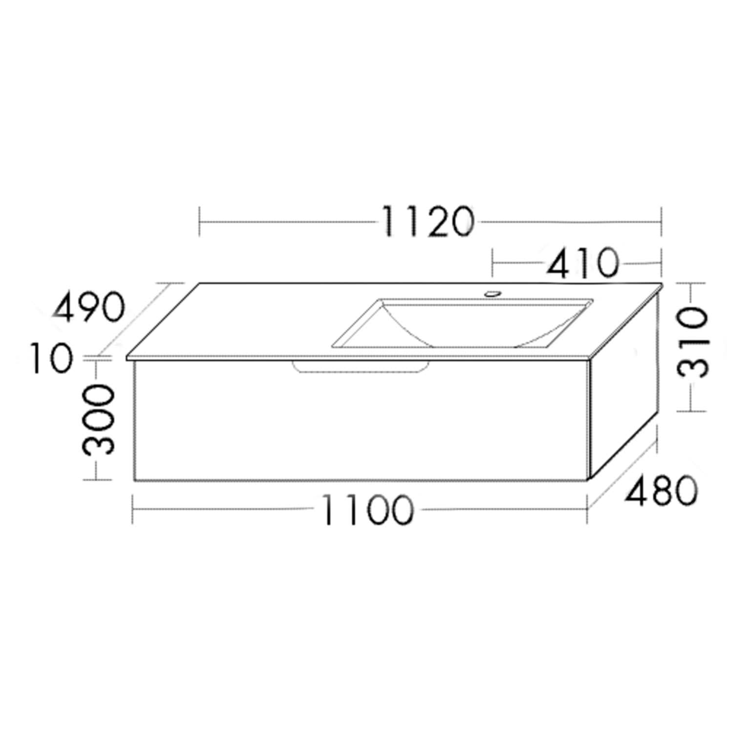 burgbad Ilo Waschtisch mit Waschtischunterschrank 112 x 31 cm, 1 Auszug