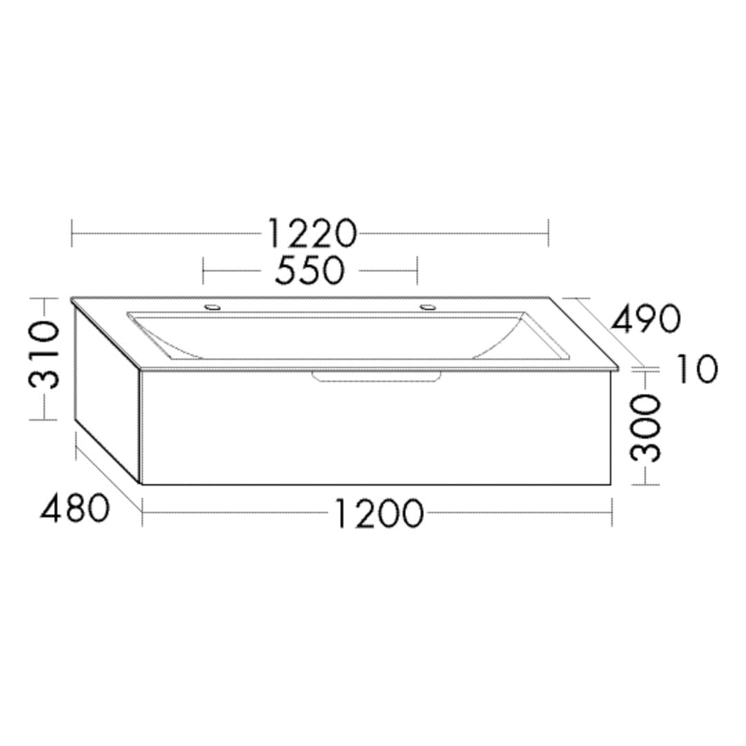 burgbad Ilo Waschtisch mit Waschtischunterschrank 122 x 31 cm, 1 Auszug