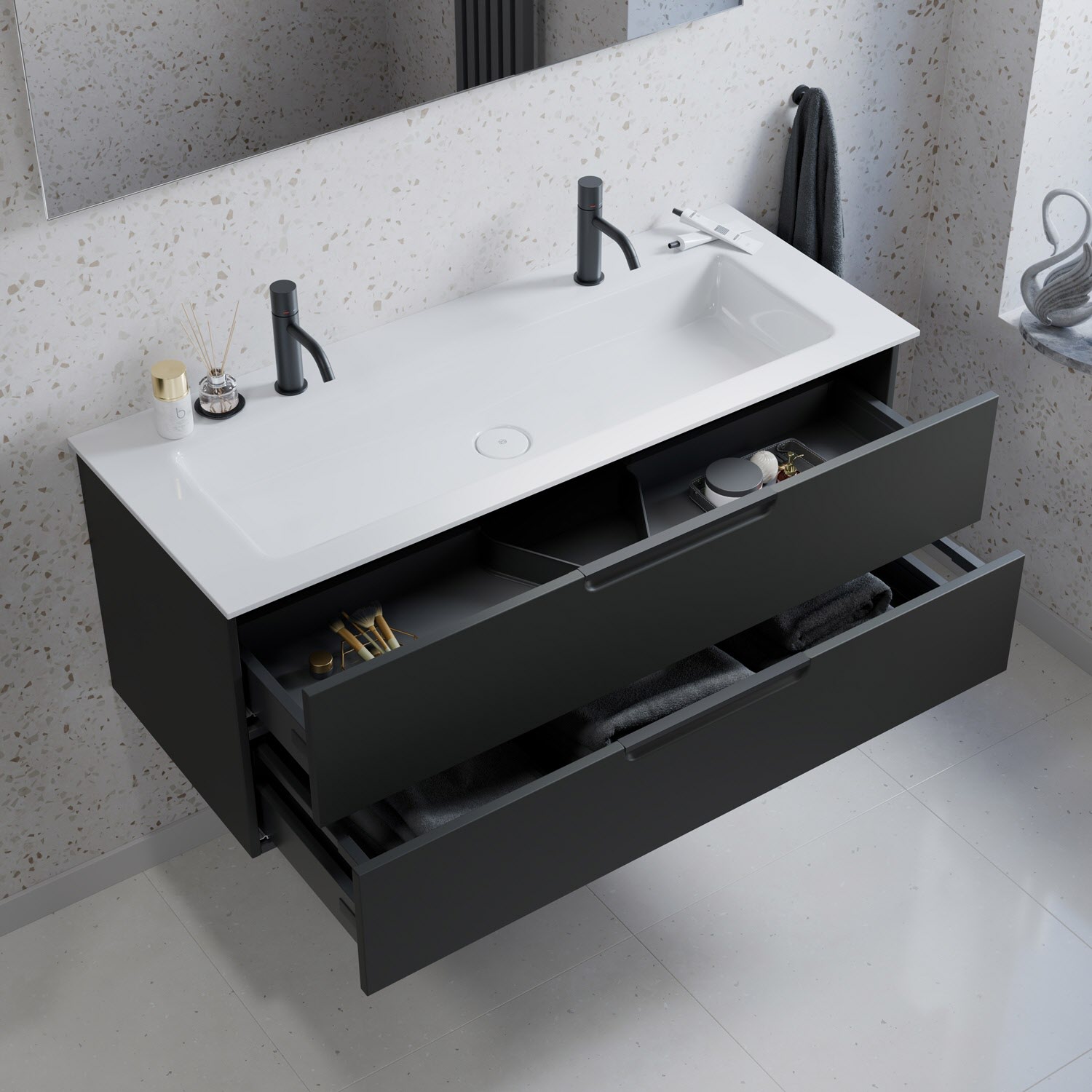 Lodge Doppel-Waschtischunterschrank 115 cm mit 1 Auszug für Waschtisch Geberit iCon