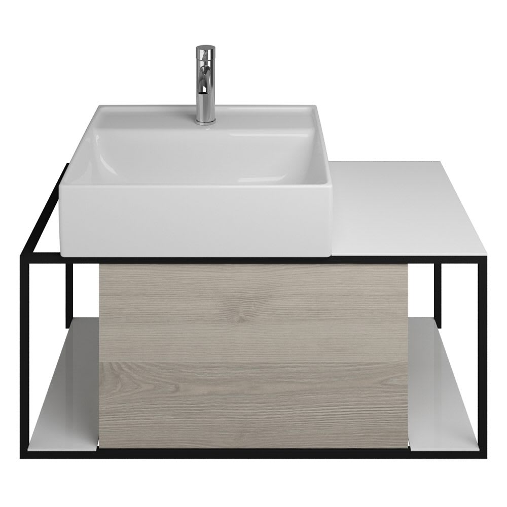 burgbad Junit Waschtischkombination mit Keramik-Aufsatzwaschtisch 76,5 cm, Handtuchhalter links