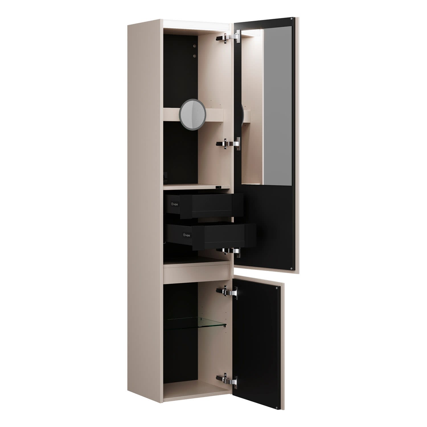 - 1 Tür oben, Frontrückseite verspiegelt