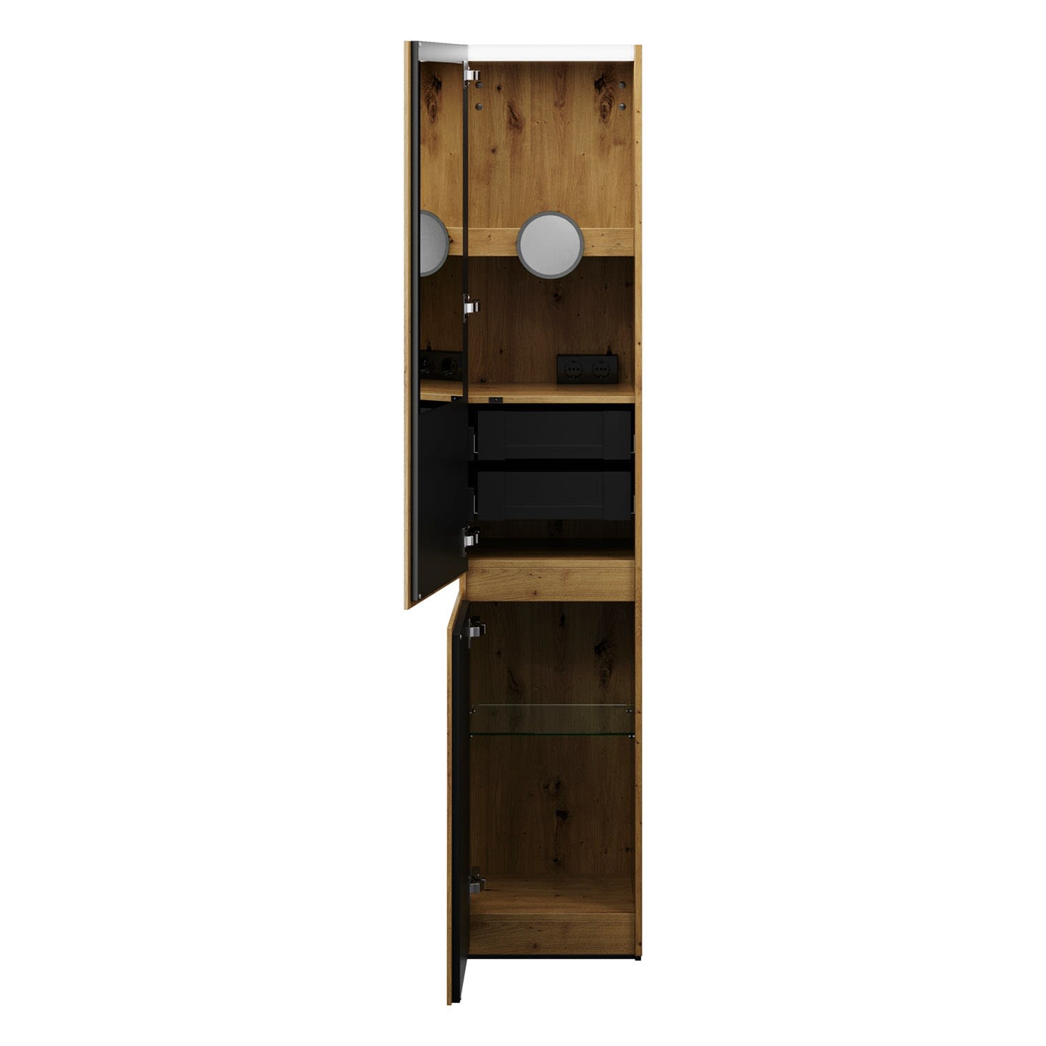 - 1 Tür oben, Frontrückseite verspiegelt