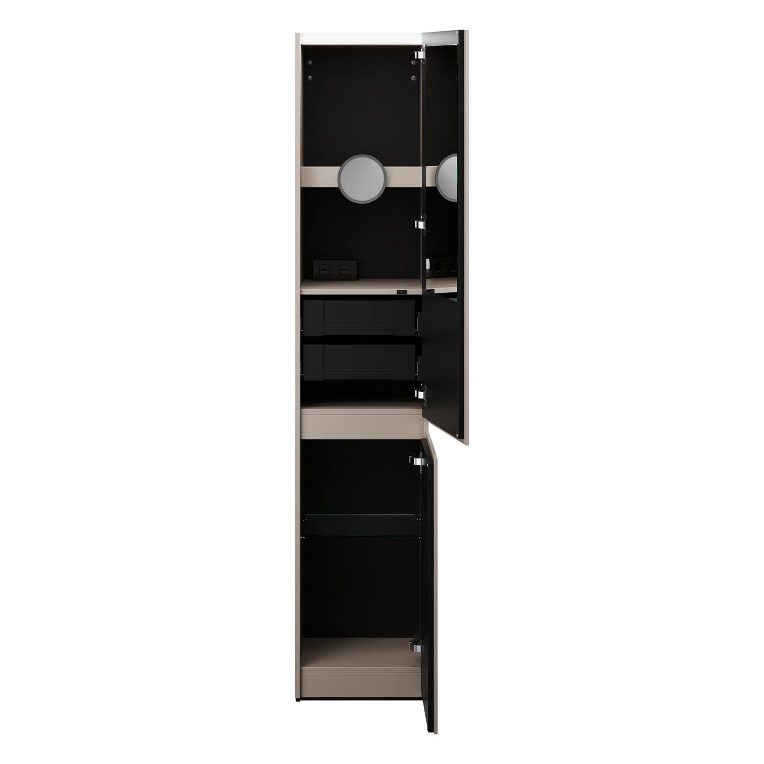 - 1 Tür oben, Frontrückseite verspiegelt
