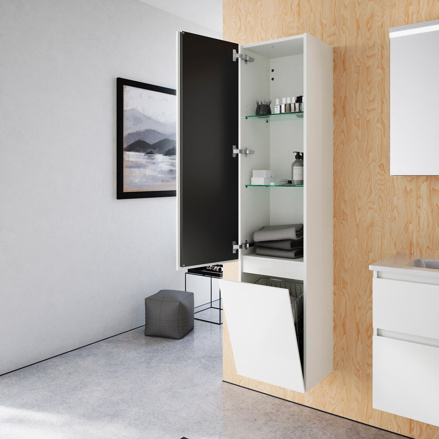 2 Glasböden, 1 fester Boden,1 Wäschekorb