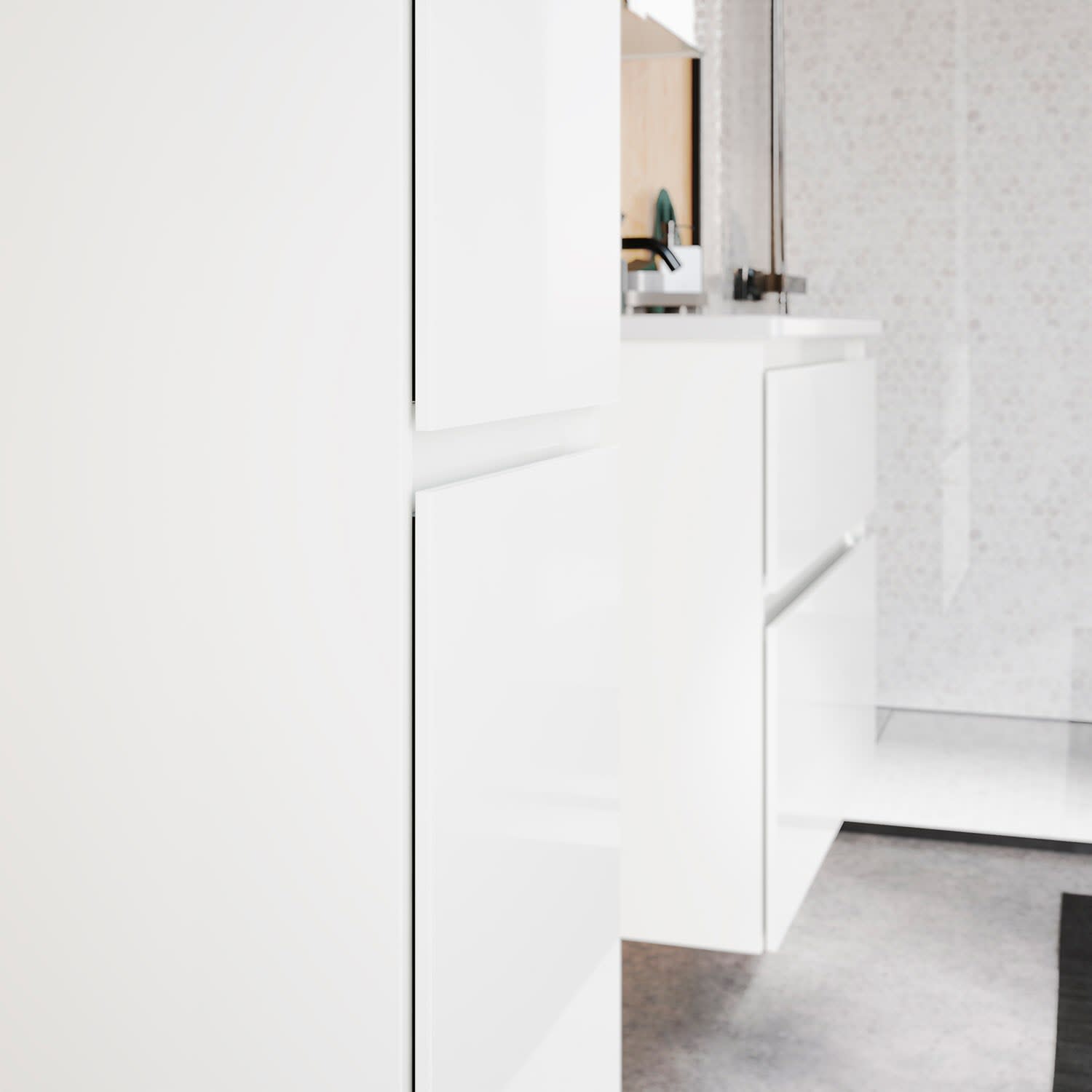 - Material Front und Korpus: MDF mit Acrylbeschichtung