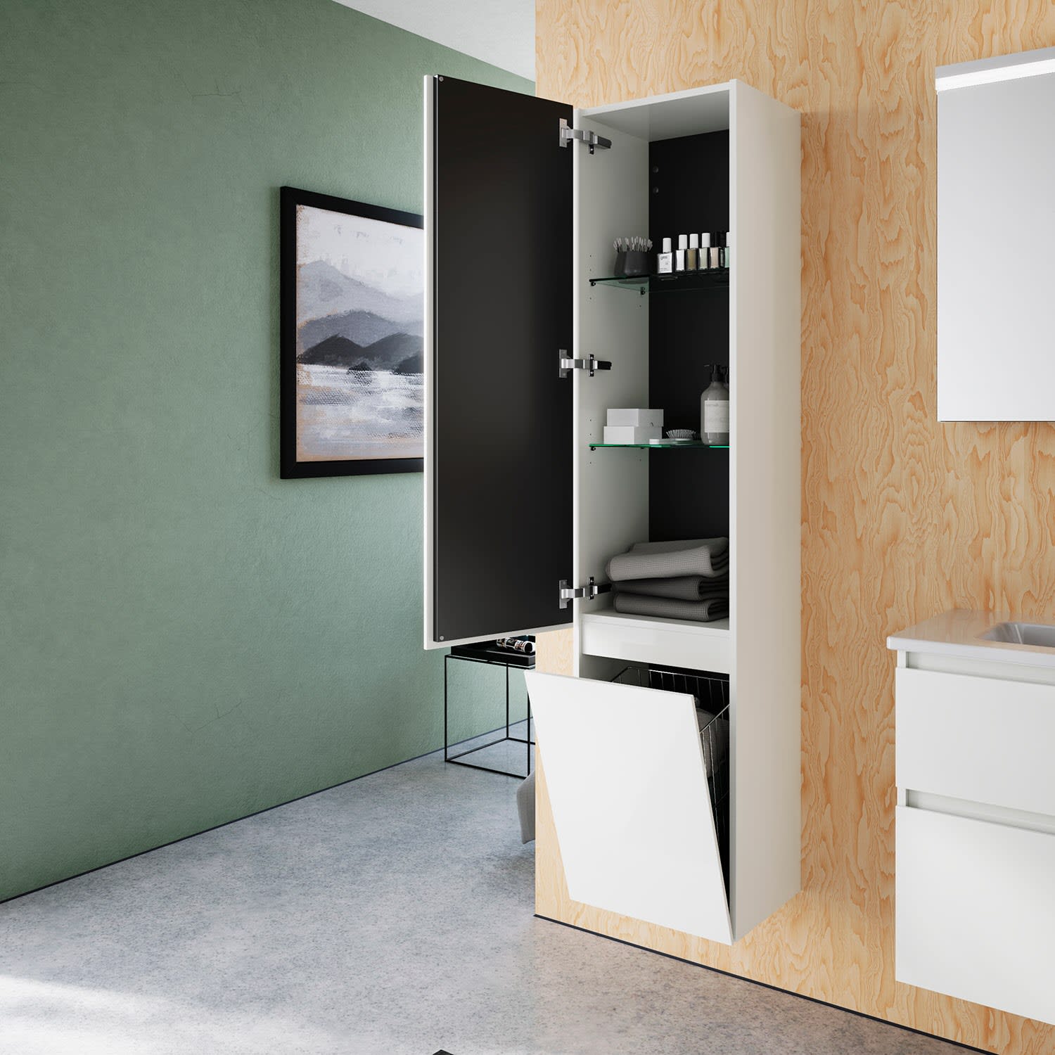 2 Glasböden, 1 fester Boden,1 Wäschekorb