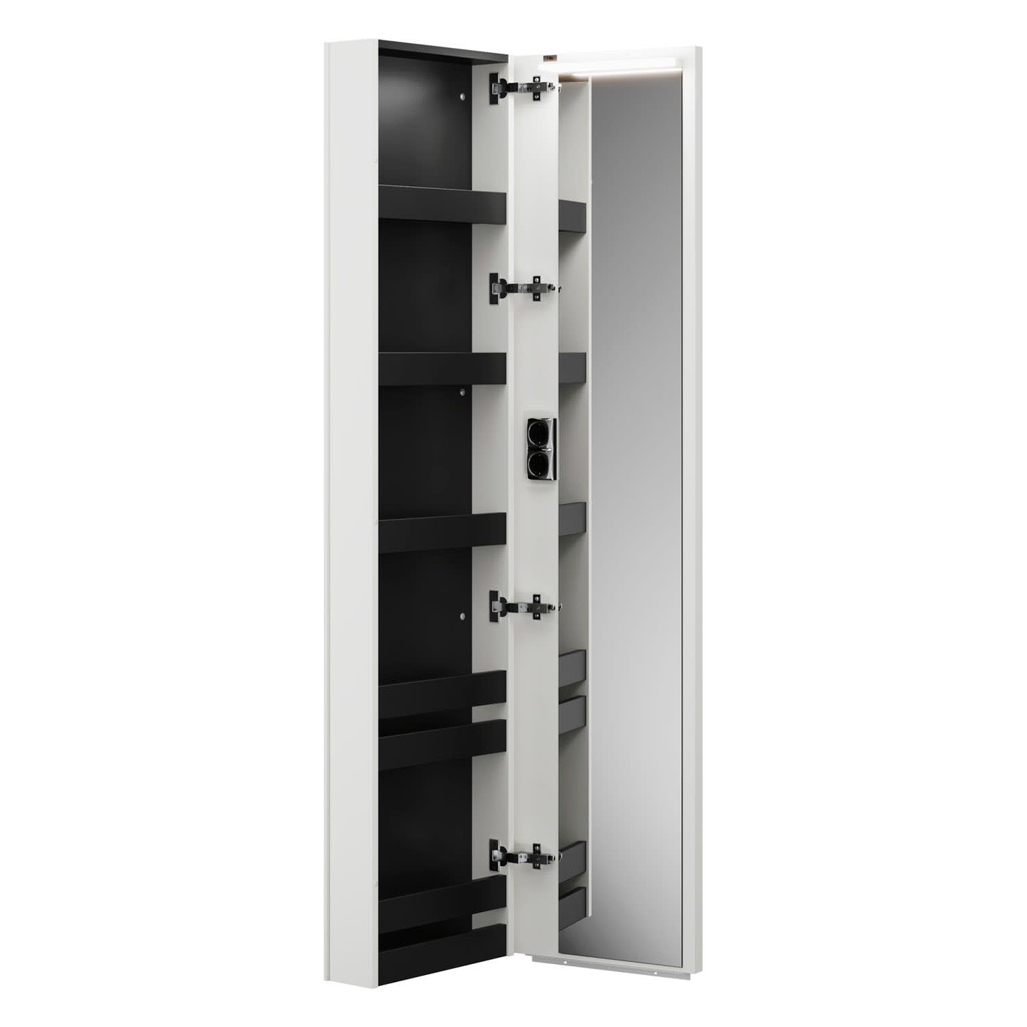 burgbad Lin20 Badspiegel mit LED-Beleuchtung, 40 cm breit und 176 cm hoch, mit Koffertür links