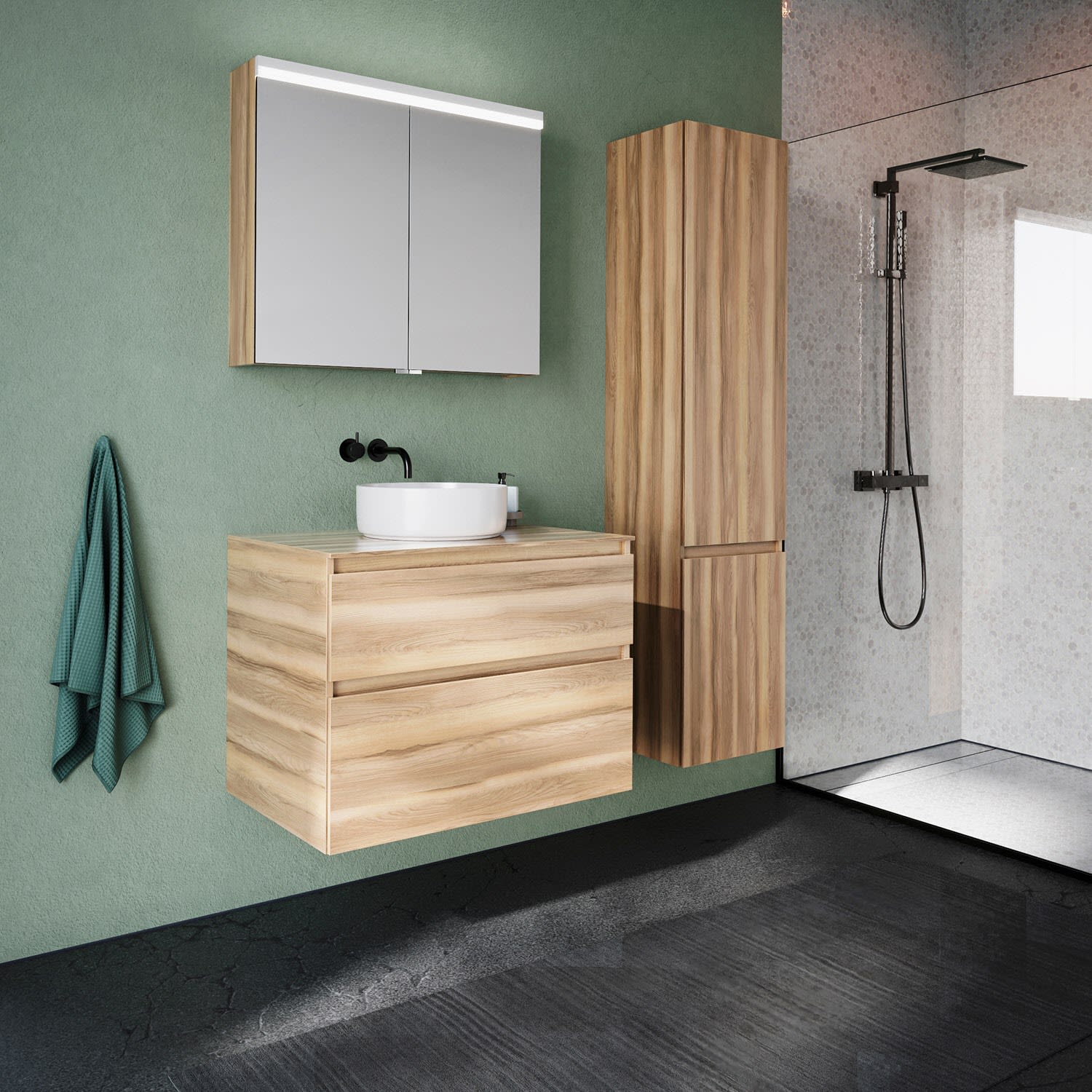 burgbad Lin20 Spiegelschrank mit LED-Beleuchtung, 80 cm, 2 Spiegeltüren