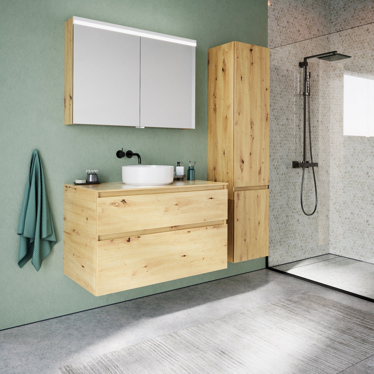 burgbad Lin20 Spiegelschrank mit LED-Beleuchtung, 100 cm, 2 Spiegeltüren