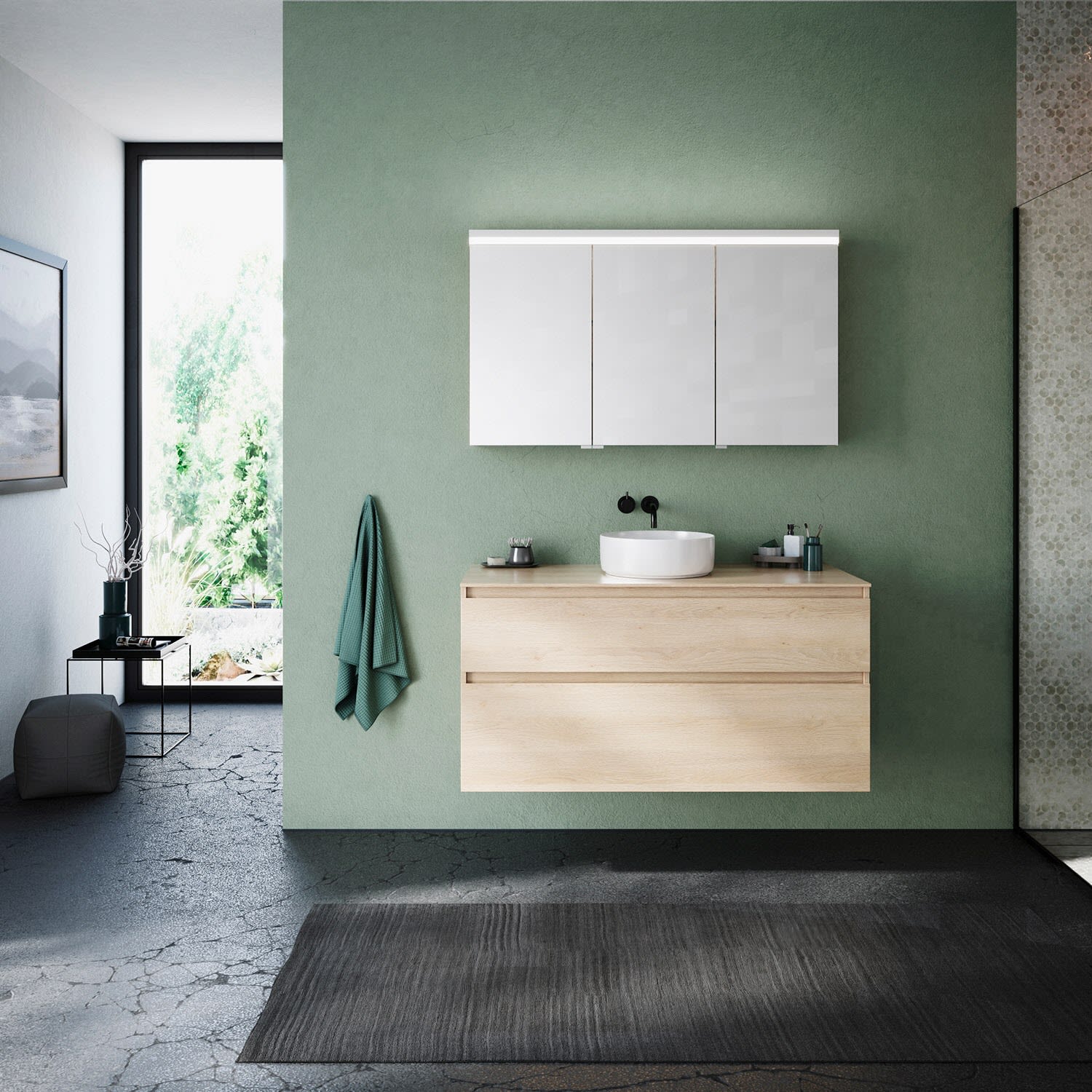 burgbad Lin20 Spiegelschrank mit LED-Beleuchtung, 120 cm, 3 Spiegeltüren, links