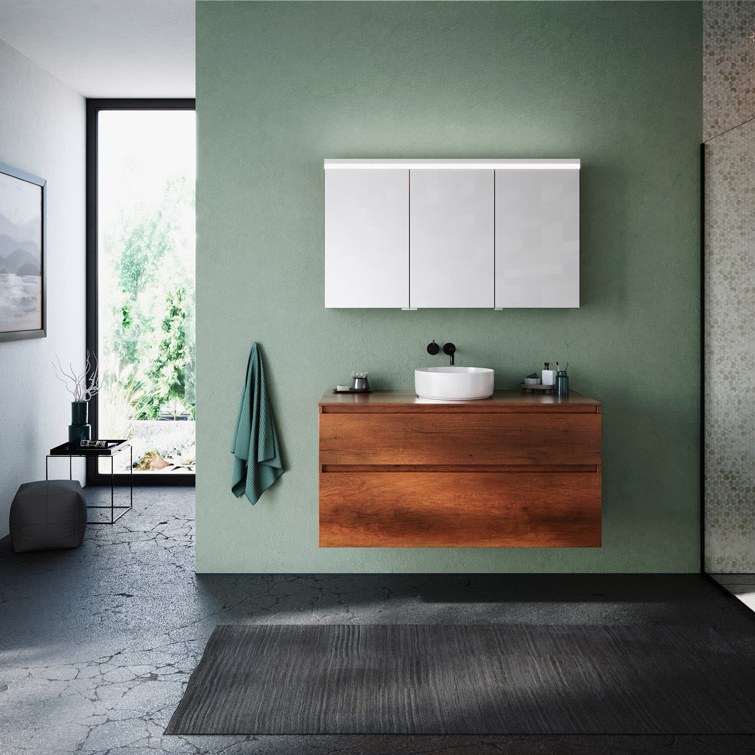 burgbad Lin20 Spiegelschrank mit LED-Beleuchtung, 120 cm, 3 Spiegeltüren, links
