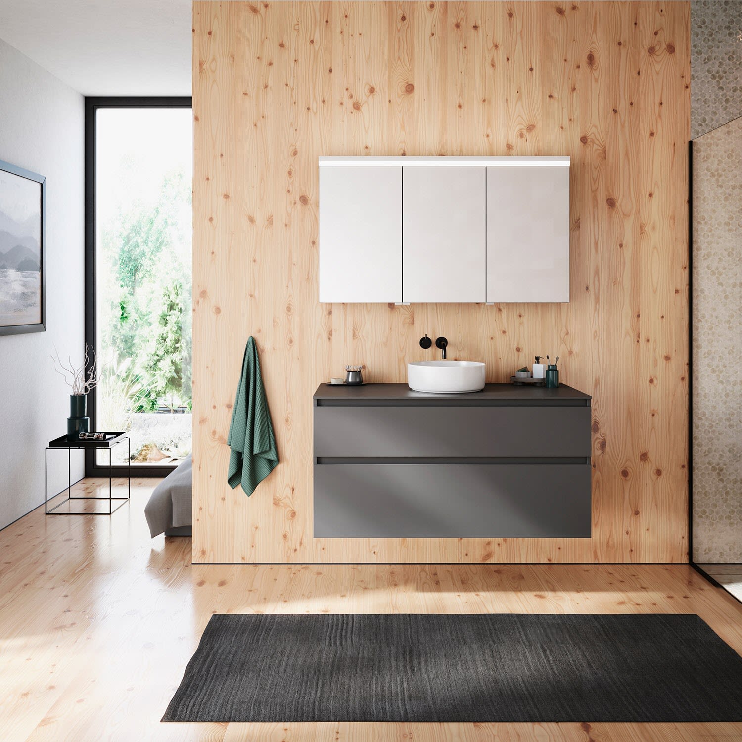 burgbad Lin20 Spiegelschrank mit LED-Beleuchtung, 120 cm, 3 Spiegeltüren, links