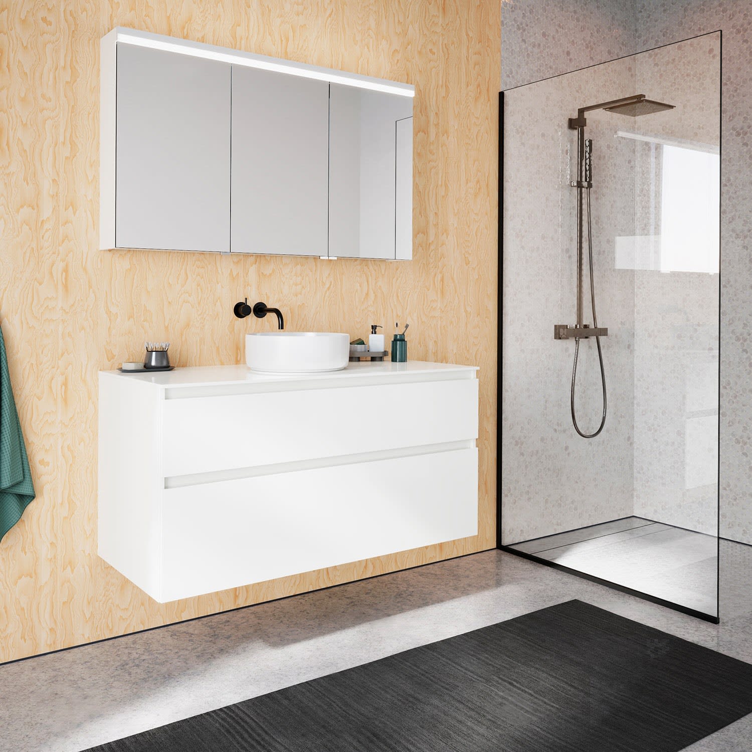 burgbad Lin20 Spiegelschrank mit LED-Beleuchtung, 120 cm, 3 Spiegeltüren, rechts