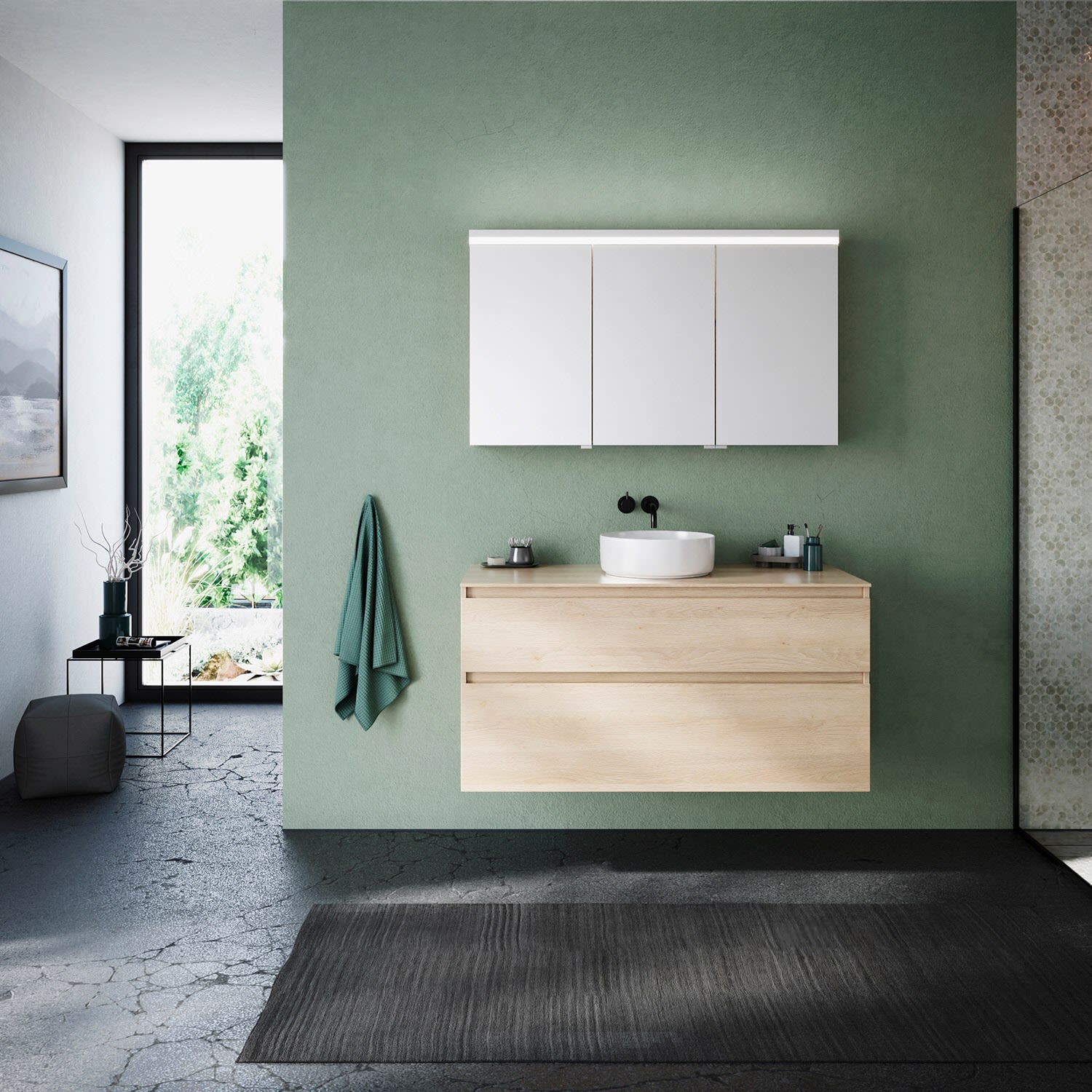 burgbad Lin20 Spiegelschrank mit LED-Beleuchtung, 120 cm, 3 Spiegeltüren, rechts