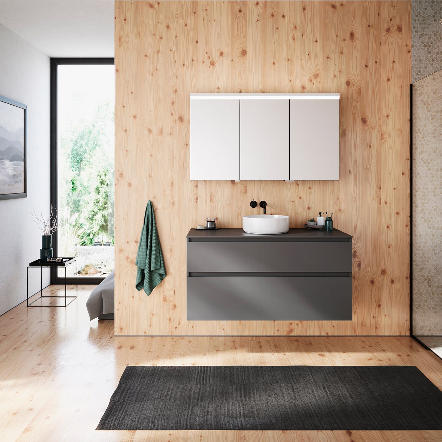 burgbad Lin20 Spiegelschrank mit LED-Beleuchtung, 120 cm, 3 Spiegeltüren, rechts