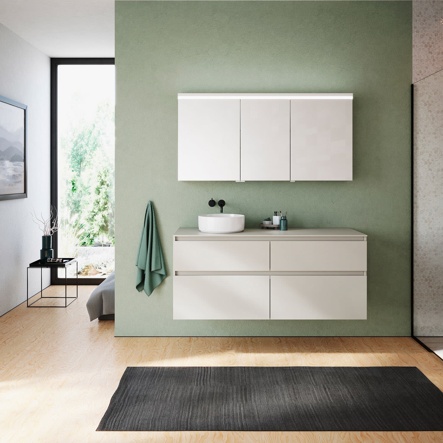 burgbad Lin20 Spiegelschrank mit LED-Beleuchtung, 140 cm, 3 Spiegeltüren, links
