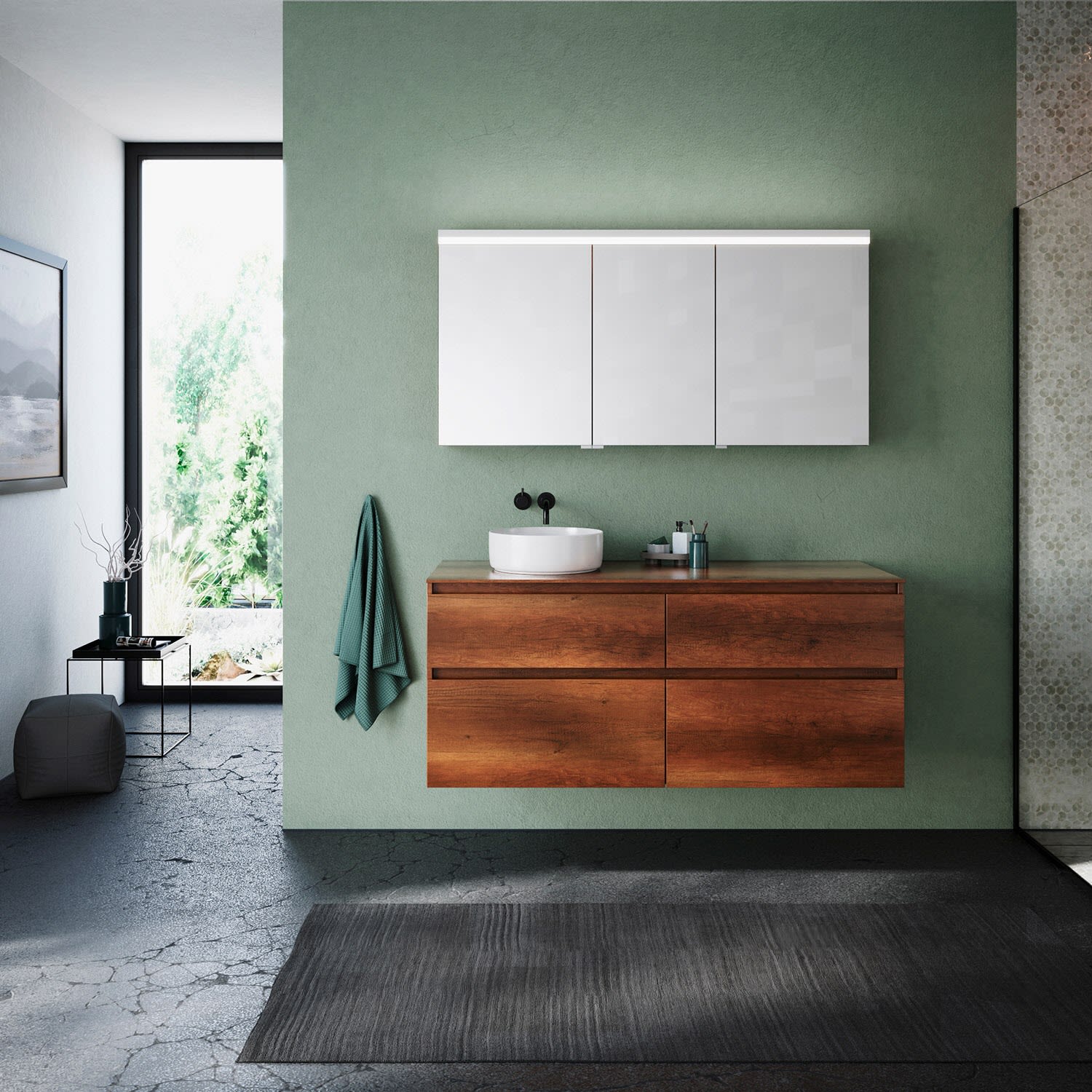 burgbad Lin20 Spiegelschrank mit LED-Beleuchtung, 140 cm, 3 Spiegeltüren, links