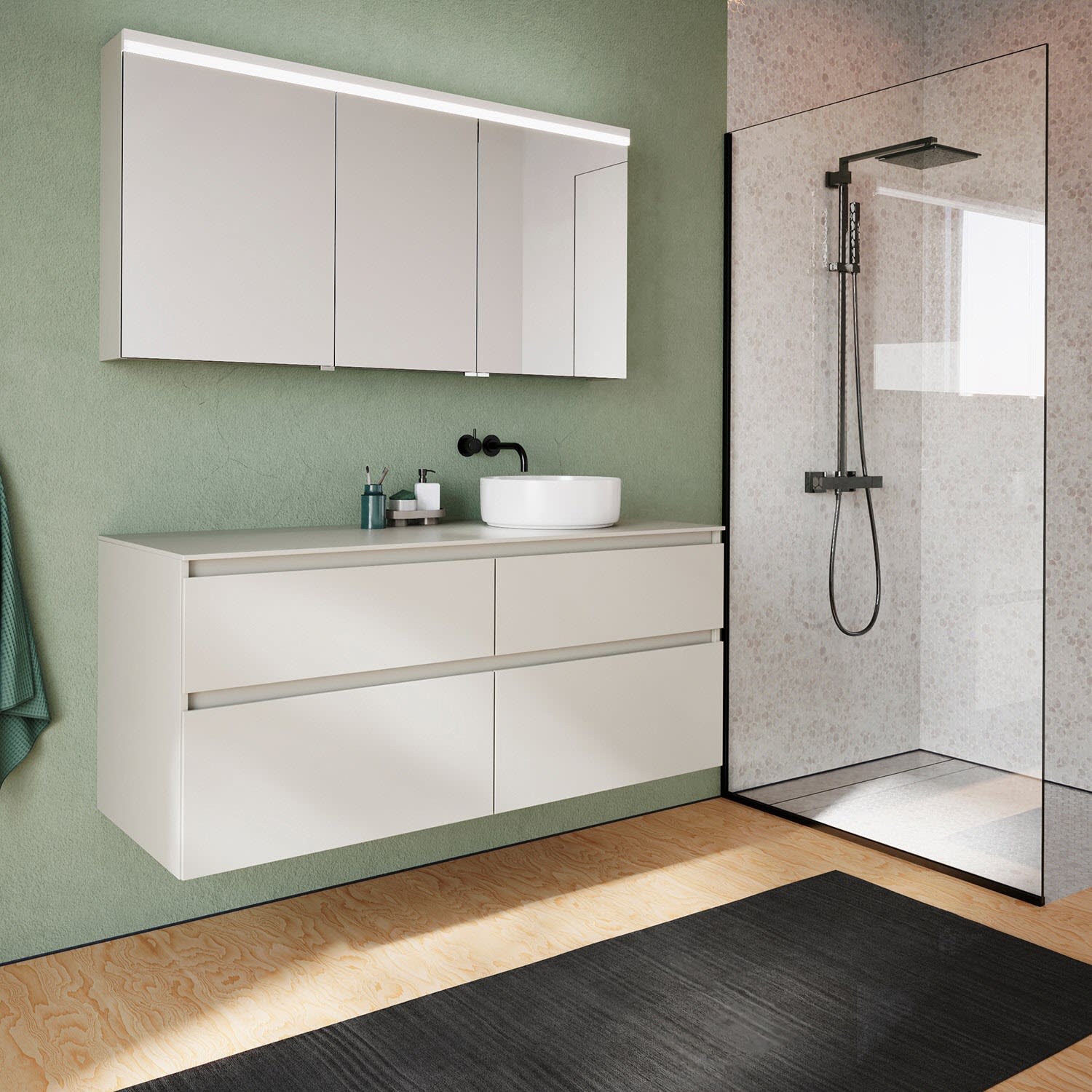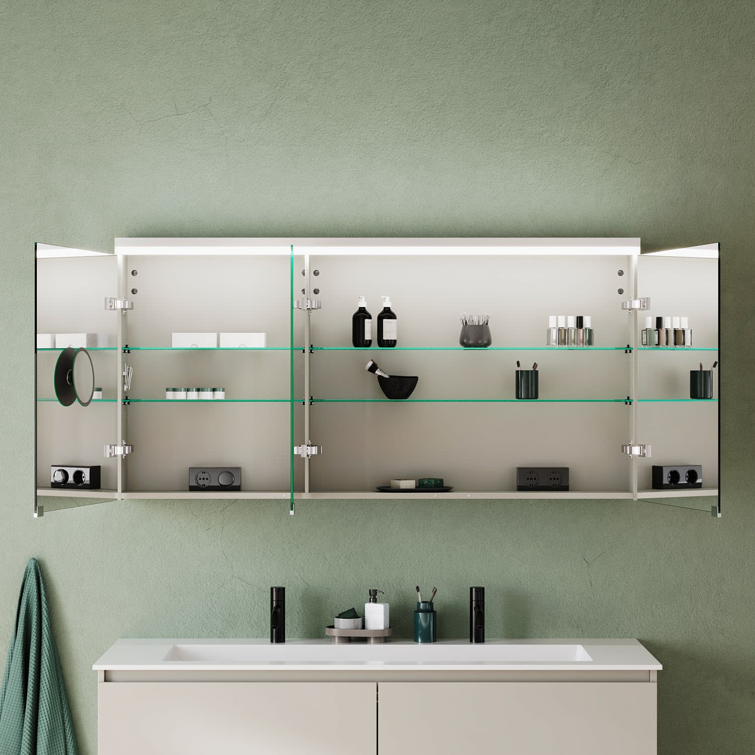 burgbad Lin20 Spiegelschrank mit LED-Beleuchtung, 140 cm, 3 Spiegeltüren, rechts