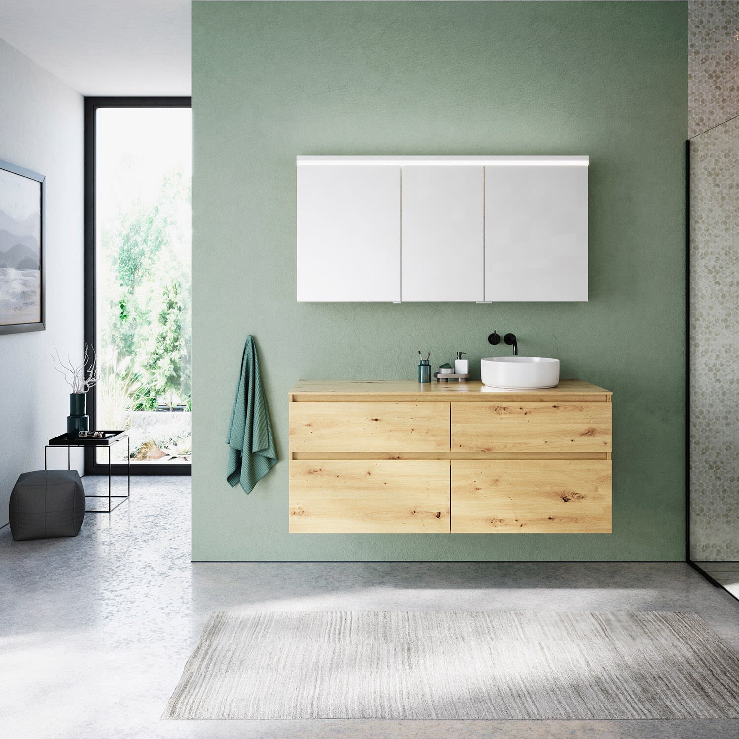 burgbad Lin20 Spiegelschrank mit LED-Beleuchtung, 140 cm, 3 Spiegeltüren, rechts
